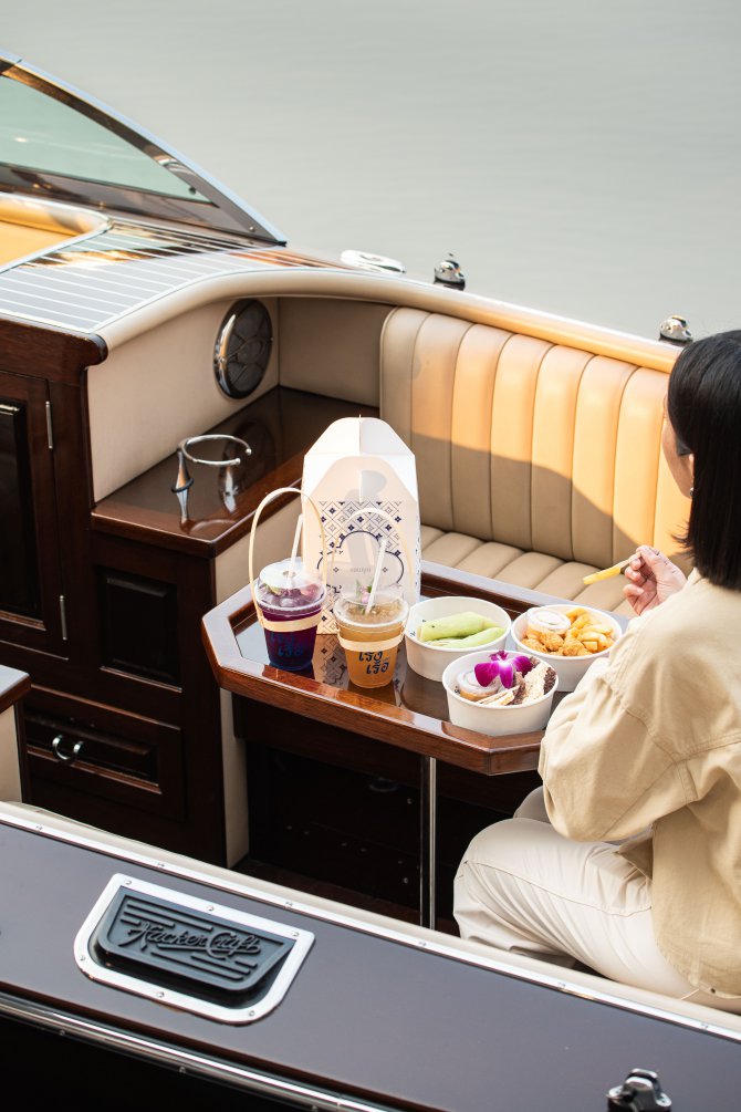 ซึ่งไม่ว่าจะมองหาช่วงเวลาที่แสนสงบแบบเป็นส่วนตัว หรือสนุกไปกับผู้คนใหม่ ๆ บริการล่องเรือลำนี้ก็มีให้เลือกสรรทั้งแบบ Join Trip และ Private Trip พร้อมมีบัตเลอร์มืออาชีพคอยให้บริการอำนวยความสะดวกสบายอย่างใกล้ชิดตลอดเส้นทาง อีกทั้งยังมีของว่างแสนอร่อย ให้เราได้เพลิดเพลินระหว่างชื่นชมทัศนียภาพสองฝั่งแม่น้ำเจ้าพระยา