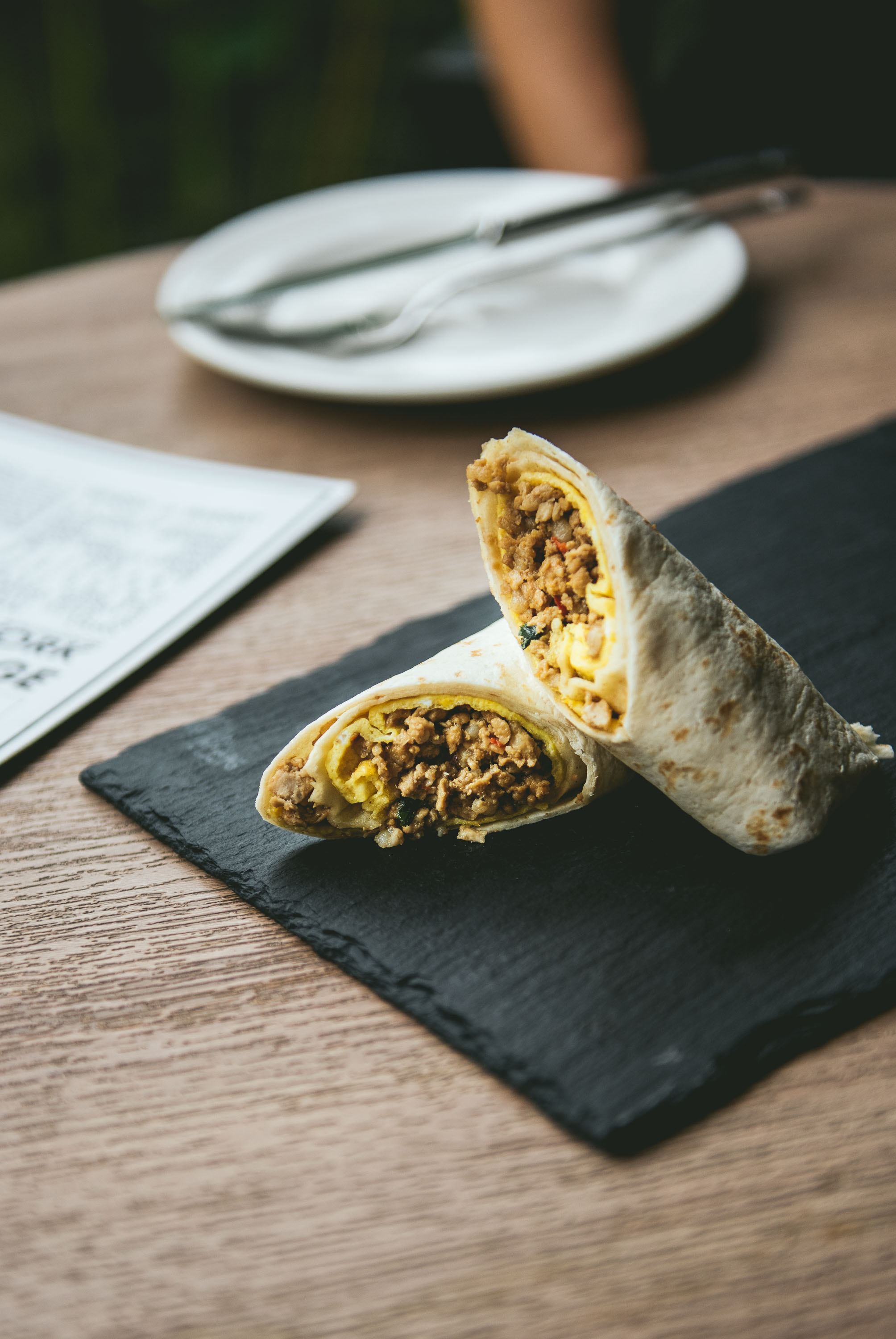 X2 Asian Wrap (150 บาท) เมนูไทยฟิวชันที่นำเสนอในรูปแบบของแป้งตอติญาสอดไส้ไข่เจียวและกะเพราหมูสับ รสเผ็ดร้อนของพริกตัดกับรสอ่อนนุ่มของแป้งเป็นอย่างดี