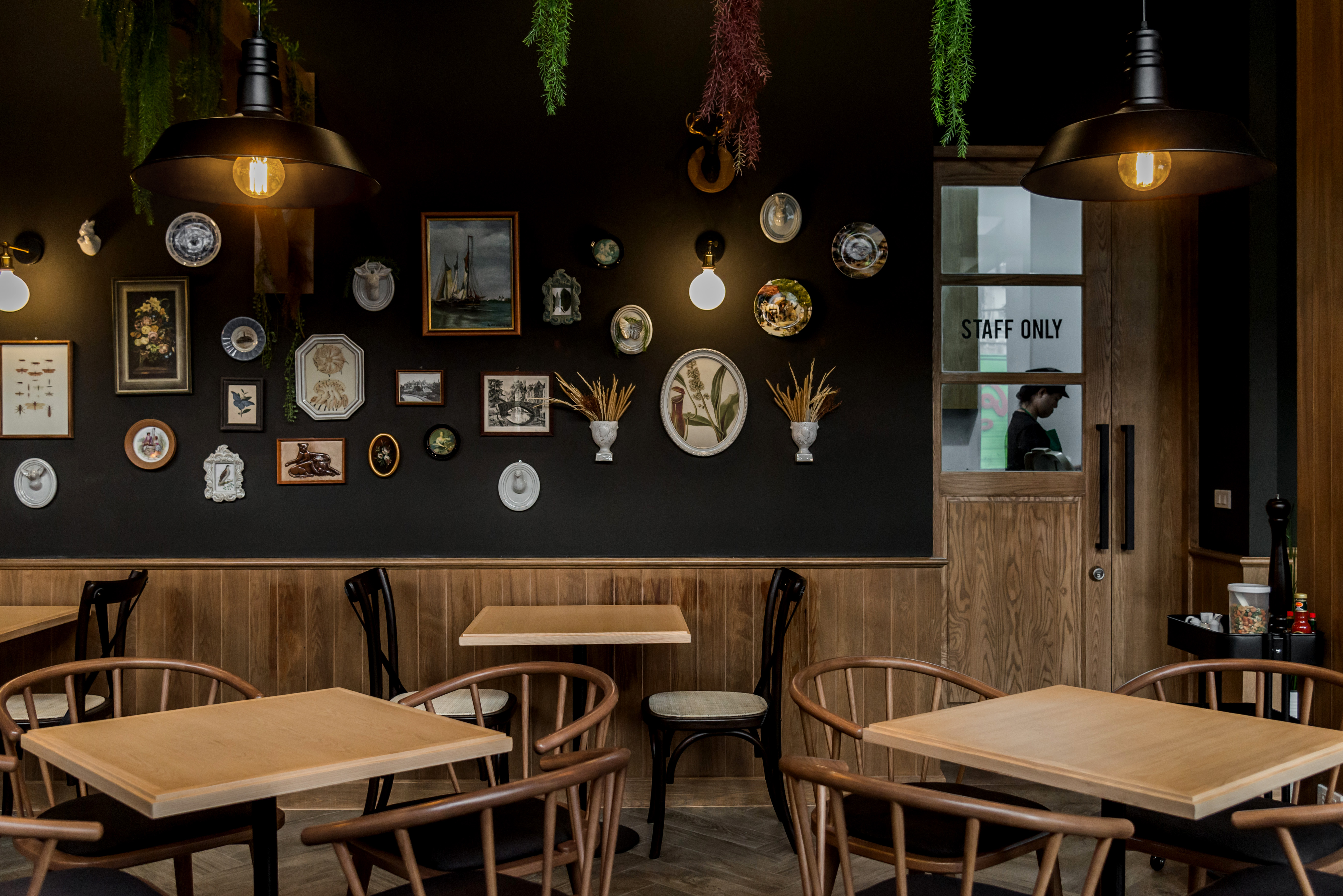 การออกแบบเน้นโทนสีอบอุ่น เมื่อเข้ามาจะพบบกับเคาน์เตอร์บาร์ไม้ที่พร้อมเสิร์ฟค็อกเทลและเบียร์สด ด้านในเป็นผนังอิฐสีขาว ตกแต่งด้วยผ้าใบสีขาวให้ความรู้สึกเหมือนนั่งอยู่ในสวนสไตล์อังกฤษ และระหว่างทางเดินขึ้นมาบนชั้นสองตกแต่งด้วยหมวกทรงคาวบอยแบบต่าง ๆ ก่อนจะพบกับจานวินเทจสวย ๆ ที่เพิ่มเติมบรรยากาศให้น่าสนใจยิ่งขึ้น