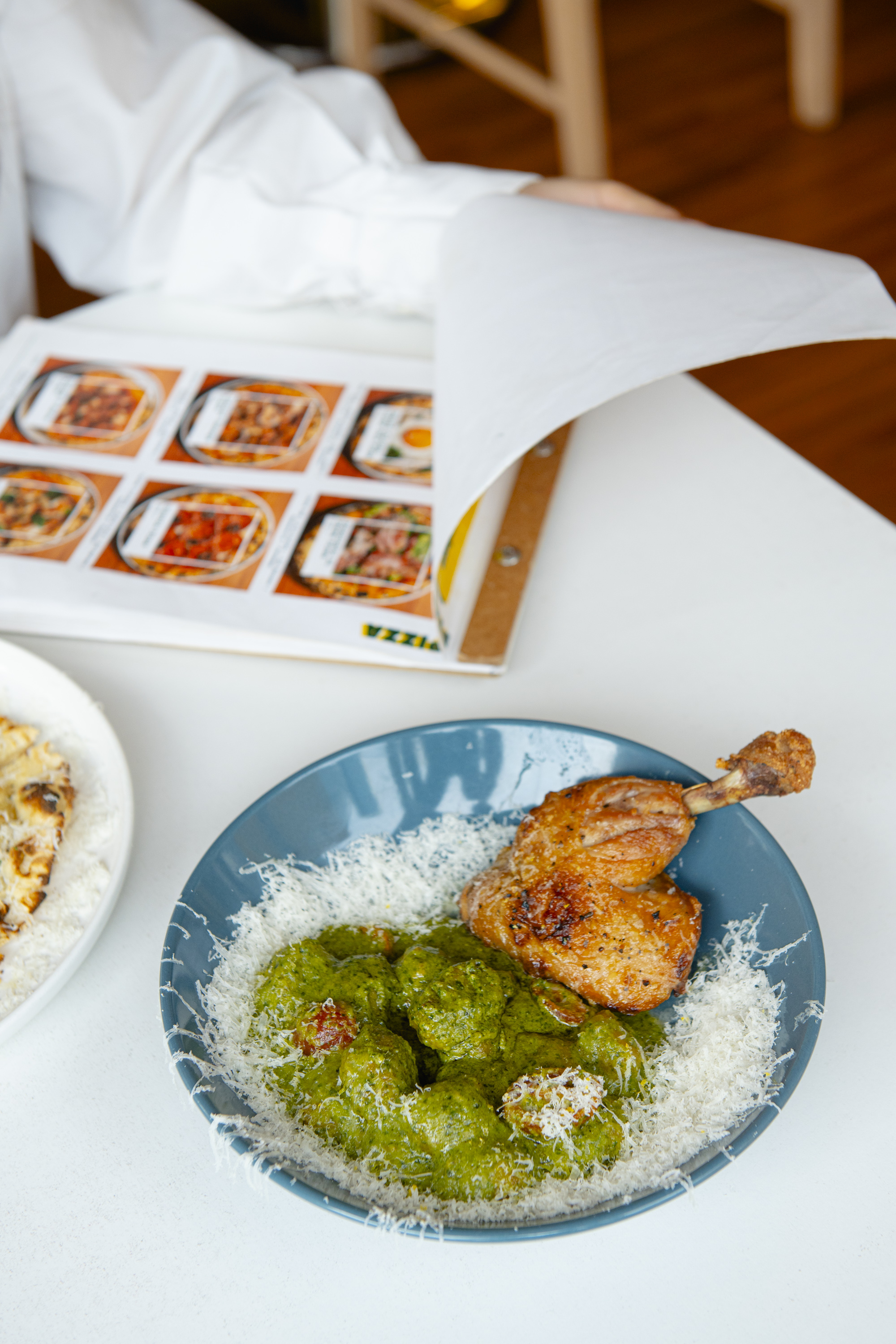 เรื่องของเมนูอาหารของที่นี่เสิร์ฟเมนูอาหารอิตาเลี่ยนแบบเฟรนด์ลี่ ไม่ซับซ้อน “เพราะเราเป็นคนยุค 90 เลยตั้งใจใช้เลขนี้มาเป็นกิมมิกของร้าน พิซซ่าทุกถาดที่นี่จะใช้แป้งเพียง 90 กรัม ทำให้ได้พิซซ่าไซส์พอดีที่สามารถทานคนเดียวได้ 1 ถาด” โดยตัวแป้งผ่านการหมักแบบที่เราทดลองมาแล้วว่าเท็กเจอร์จะเบา ทานได้เรื่อย ๆ ไม่แน่นท้อง