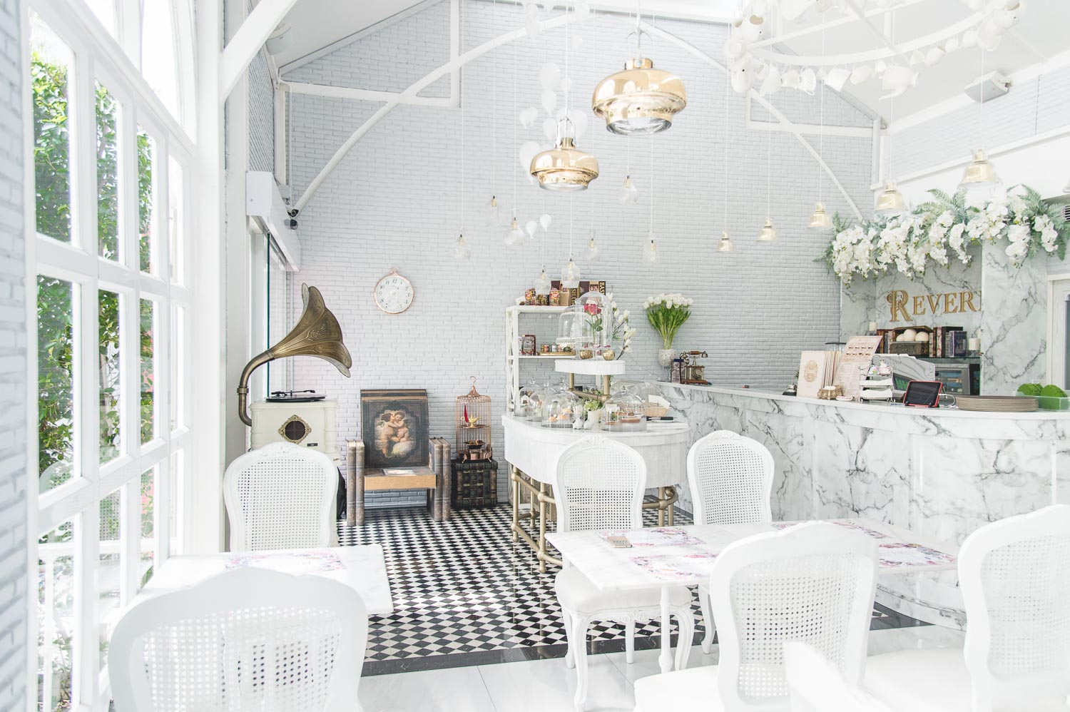 ชื่อ Reverie ที่แปลว่า ฝันกลางวัน พร้อมต้อนรับทุกคนเข้าสู่โลกแห่งเทพนิยาย ตั้งแต่ด้านหน้าร้านที่มีสวนดอกไม้มองแล้วสบายตา และเมื่อก้าวเข้ามาในประตูรูปปกหนังสือ จะพบกับเรือนกระจก เน้นความโปร่ง สว่าง ด้วยสีขาวของหินอ่อน