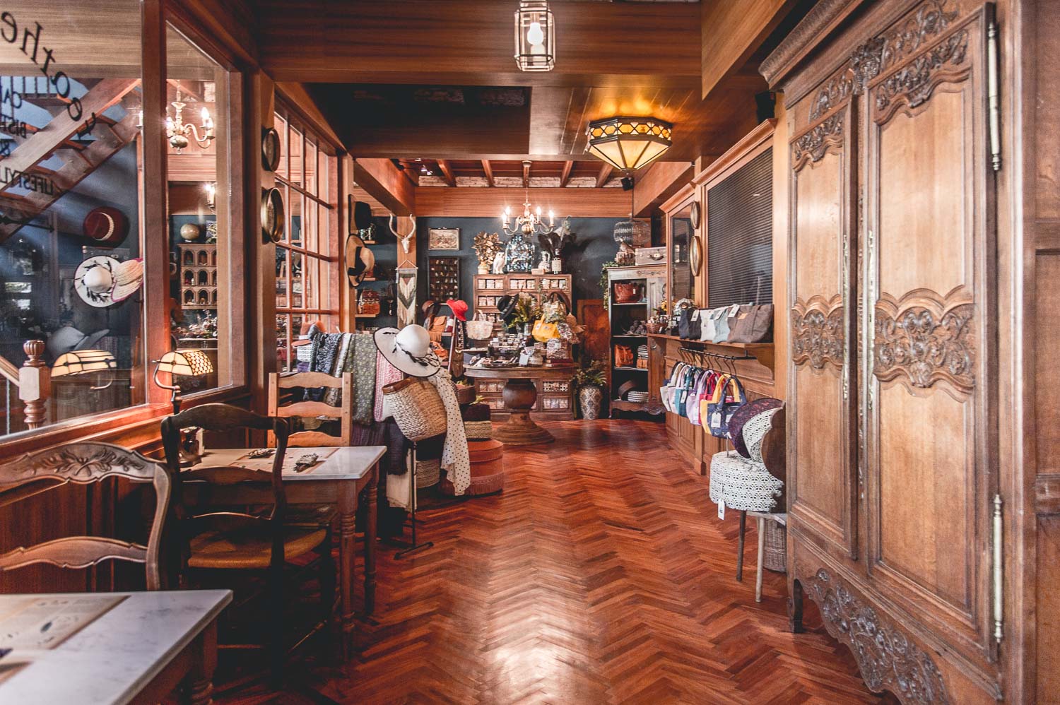 ส่วนโซนคาเฟ่ได้ไอเดียมาจาก Cabinet of Curiosity ด้านในจึงมีหลายสิ่งน่าตื่นตาตื่นใจรออยู่ภายในห้องที่จำลองให้เหมือนห้องใต้หลังคาสไตล์ยุโรปผสมกับบรรยากาศแบบเฟรนช์บิสโทร ใช้พื้นกระเบื้องโมเสก เก้าอี้หวาย โต๊ะหินอ่อน แบ่งเป็น 2 ห้อง คือห้องที่ได้แรงบันดาลใจมากจาก Apothercary ซึ่งจะมีขวดยาวินเทจวางอยู่เรียงรายบนตู้ไม้แอนทีค