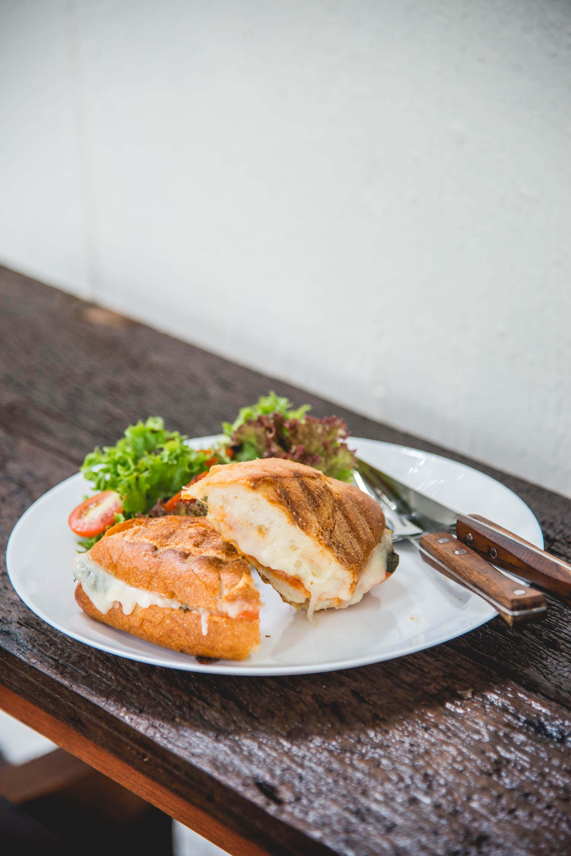 สำหรับเมนูของที่นี่ ถูกดูแลโดยคุณหนิงและคุณตอง ซึ่ง คุณหนิง เคยทำงานในร้านขนมอยู่ที่ซานฟรานซิสโก และได้กลับมาเรียนเพิ่มเติมที่ Le Cordon Bleu Dusit และเปิดร้านเค้กปั้นของตัวเอง ส่วนคุณตองเองก็ได้สนใจในการทำเบอเกอร์รี่และเคยเปิดร้านเค้กปั้นมาก่อนแล้ว จึงได้ร่วมหุ้นกันเปิดร้านนี้ขึ้นมา โดยเน้นเสิร์ฟเบเกอร์รี่เป็นหลัก มาเริ่มต้นที่เมนูมื้อเช้า อย่าง Margherita Pannini (185 บาท) ขนมปังพานีนี สอดไส้ซอสมะเขือเทศ ผักโขม และชีส นำไปอบจนด้านนอกกรอบ สามารถให้ทางร้านเพิ่มเนื้อสัตว์ให้ได้ โดยมีทั้งแฮมและไก่ให้เลือกตามชอบ