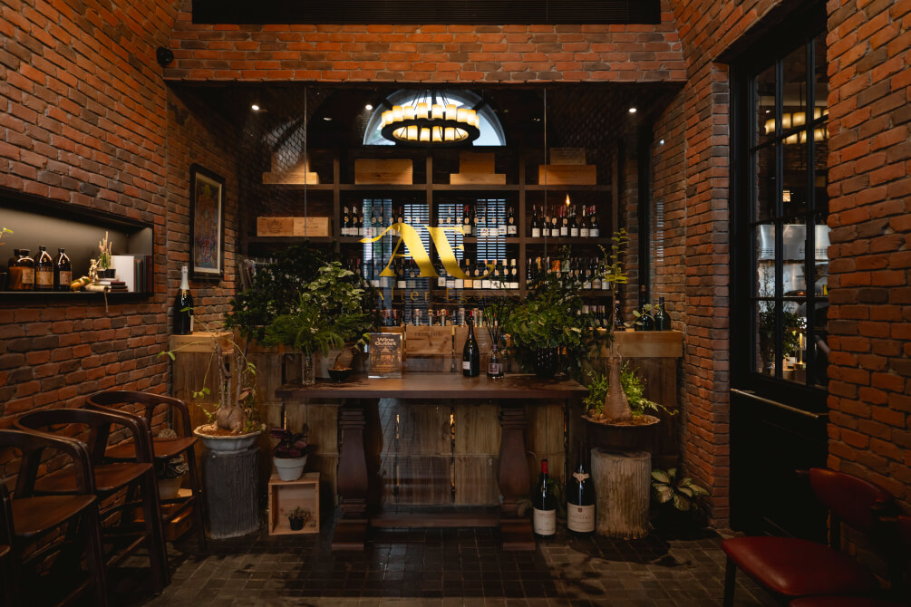 ในส่วนของบรรยากาศร้าน ถูกออกแบบและตกแต่งร้านในสไตล์ Contemporary เน้นความโปร่งโล่งสบาย ไม่อึดอัด ให้กลิ่นอายของความเป็นยุโรปด้วย Element ของการเลือกใช้วัสดุแก้ว อิฐ หิน และการคุมโทนสีเฟอร์นิเจอร์ที่เข้ากับร้านอาหาร-ไวน์บาร์ พร้อมโซนนั่งหลากหลายแบบ ทั้งเคาน์เตอร์บาร์, โซฟา High Chair และห้อง VIP ส่วนตัว (จำนวน 2 ห้อง สามารถรองรับจำนวนคนได้ถึงห้องละ 12 คน) ให้เลือกเอ็นจอยโมเมนต์ของการสังสรรค์กันได้ตามอัธยาศัย