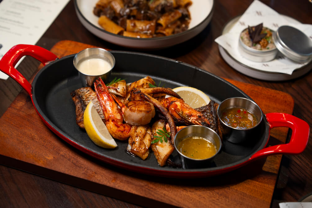 จากนั้นจัดเต็มความอร่อยด้วยหมวดอาหารจาน Main Course อย่าง Seafood Platter (2,250 บาท) รวมซีฟู้ดนานาชนิดประจำวัน ประกอบด้วยกุ้งตัวโต, หอยเชลล์ ปลาหมึก และปลาชนิดต่าง ตามฤดูกาล เสิร์ฟพร้อมเลมอนฝาน และน้ำจิ้มรสเด็ด 3 สไตล์