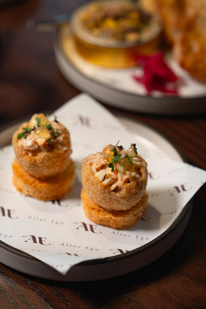 การมาเยือนร้าน Alter Ego ครั้งนี้ ทางร้านภูมิใจนำเสนอความอร่อยโดยแบ่งออกเป็นหลายหมวดหมู่ ประกอบไปด้วย Bar Menu, Staters, Pasta & Risotto, Main Course และ Desserts ให้ได้เลือกสั่งมาอิ่มอร่อยแบบครบครัน ประเดิมเมนูแนะนำจานแรกด้วย ปานิปุริเนื้อปู (350 บาท) เมนู Small Bite แป้งกรอบสไตล์อินเดียที่สอดไส้สลัดปูจากสุราษฎรธานี ปรุงรสแบบสไตล์ตะวันตกด้วยมะนาวและเครื่องสมุนไพรหอม