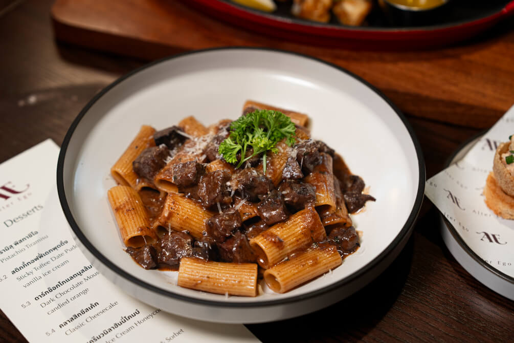 Alter Ego เน้นเสิร์ฟความอร่อยด้วยอาหารสัญชาติตะวันตกสไตล์ Minimal Comfort Food ผสานความเป็น Fusion ที่อร่อยง่าย ไม่ซับซ้อน เพื่อให้ได้รสชาติที่ถูกปากคนไทย ผ่านการเลือกใช้วัตถุดิบคุณภาพของไทย 50% และนำเข้าจากต่างประเทศ 50%