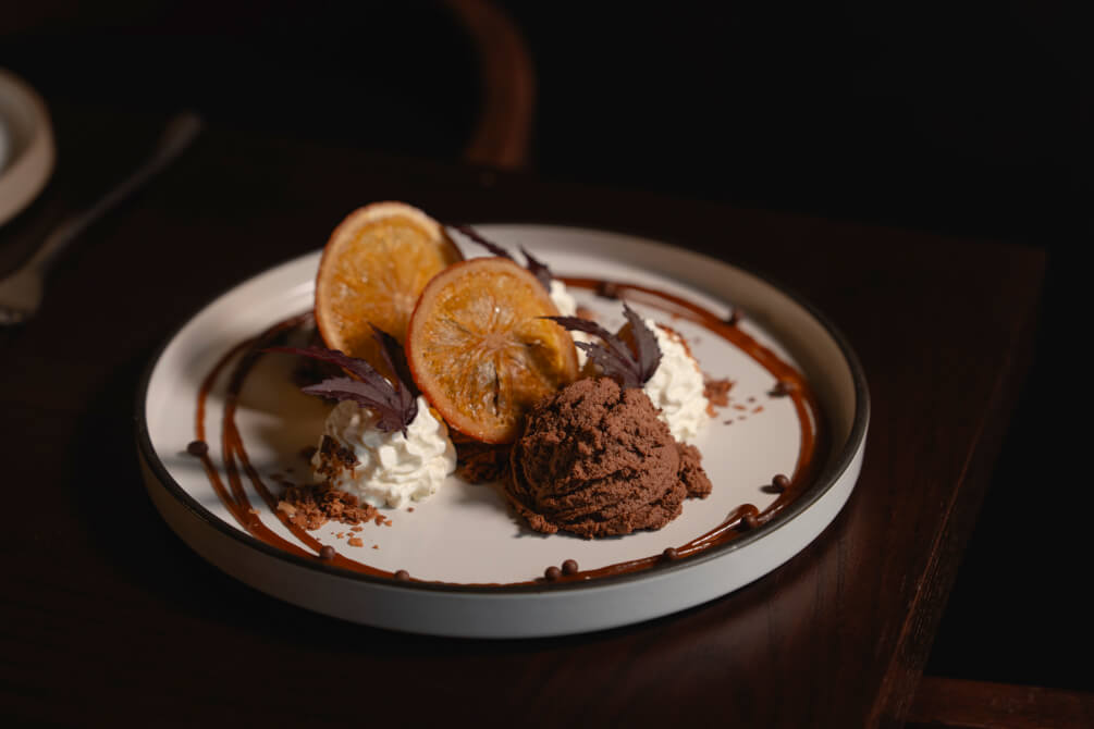 ปิดท้ายมื้อพิเศษนี้ด้วยหมวด Desserts กับเมนู ดาร์กช็อกโกแลตมูสส้มเชื่อม (270 บาท) ดาร์กช็อกโกแลตมูสที่เสิร์ฟคู่ความอร่อยมากับส้ม Sunkist เชื่อม ผสานรสขมนิด หวานหน่อย ให้เป็นความอร่อยที่ลงตัว