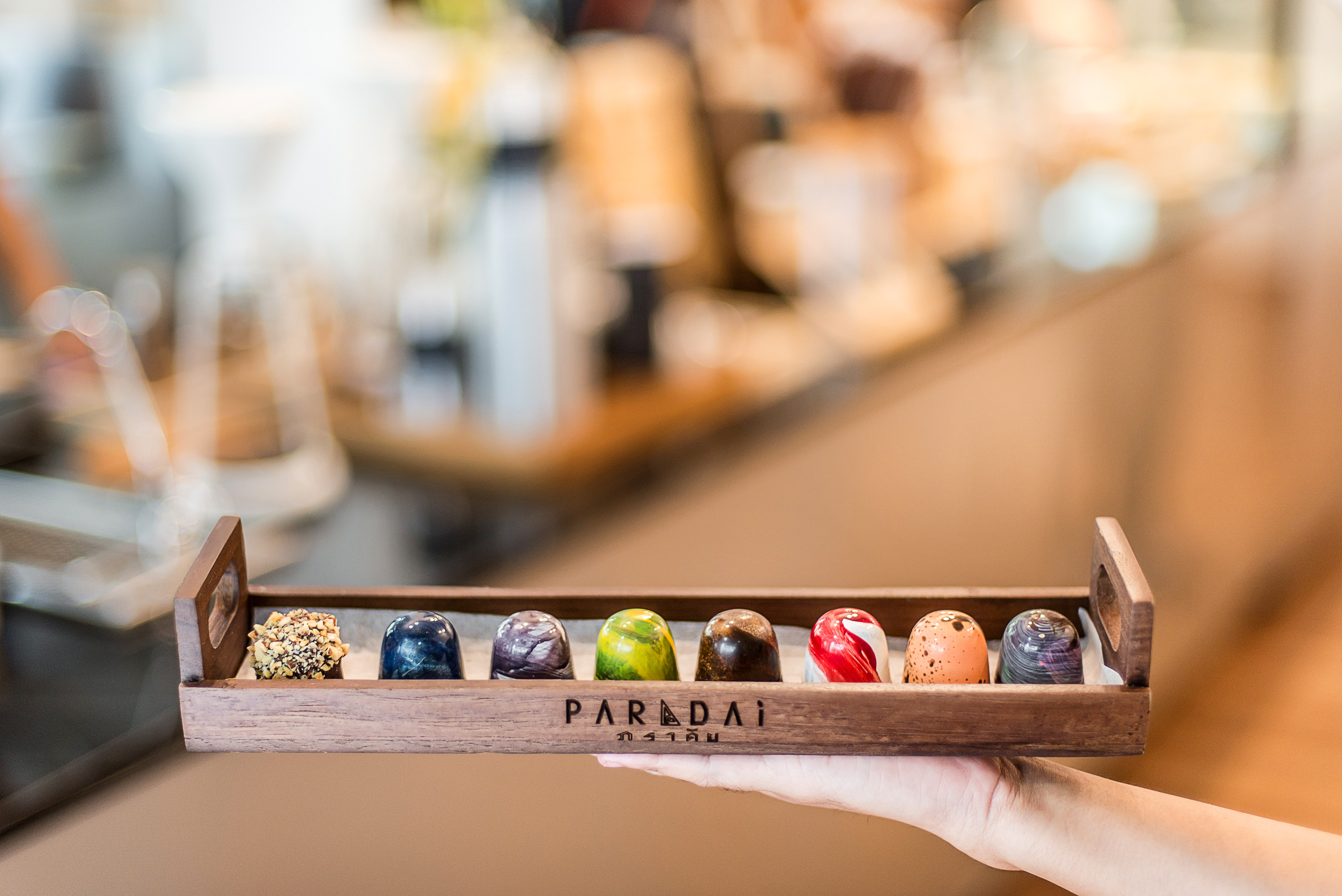 PARADAi Crafted Chocolate & Cafe โรงงานช็อกโกแลตสัญชาติไทยที่ซ่อนตัวอยู่ ณ ตึกแถวย่านพระนคร ที่นอกจากจะเปิดให้ชมกระบวนการทำช็อกโกแลตแบบทุกขั้นตอนผ่านกระจกใสบานใหญ่ ที่อบอวลไปด้วยกลิ่นหอมของช็อกโกแลตอยู่ภายในแล้ว ยังพาเราไปสัมผัสรสชาติช็อกโกแลตแท้จากเมล็ดโกโก้ไทยที่คุณภาพไม่เป็นรองใครในโลก