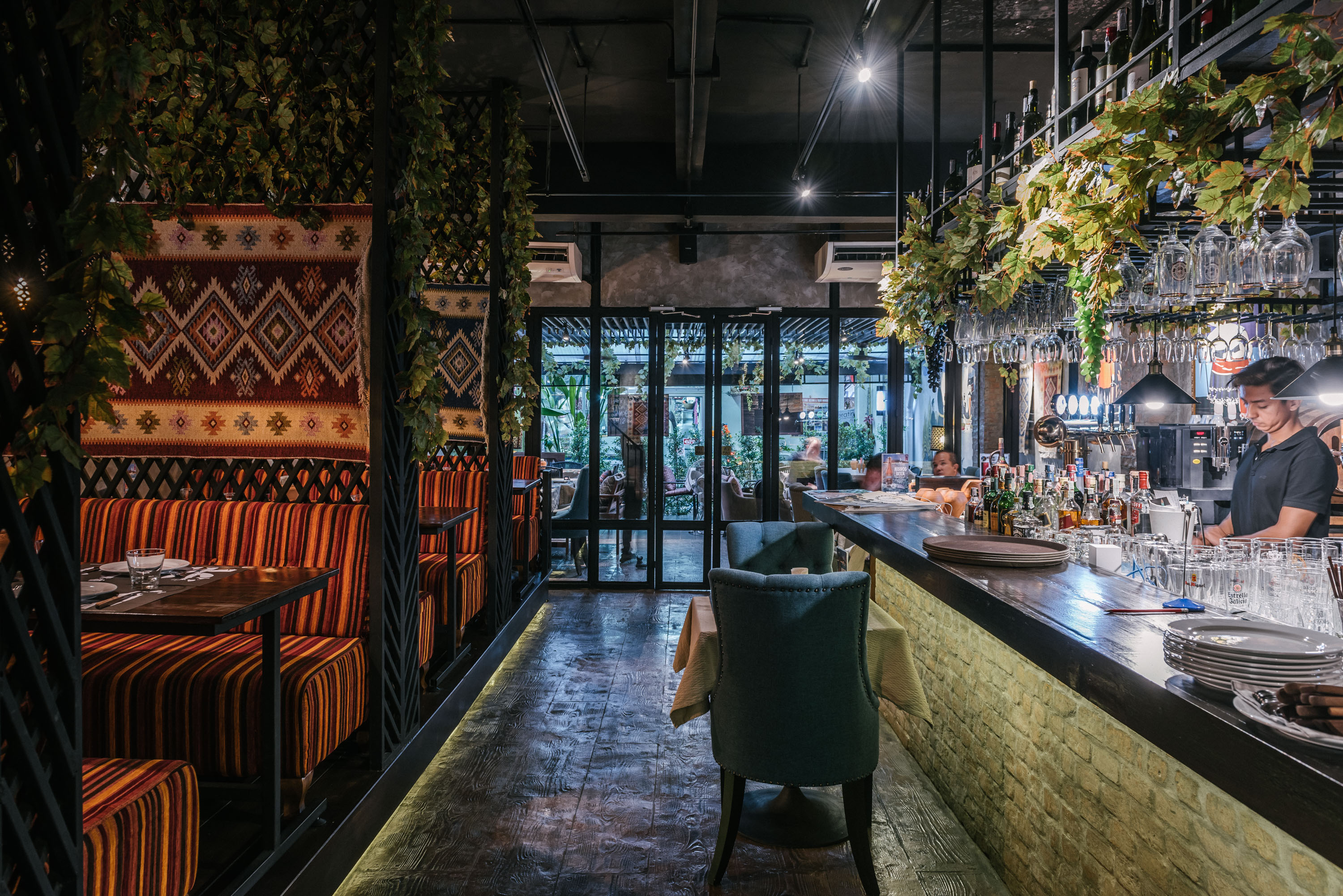 บรรยากาศภายในร้านให้ความรู้สึกเงียบสงบท่ามกลางธรรมชาติตามแบบภูมิประเทศของจอร์เจีย โดยถ่ายทอดผ่านการตกแต่งที่ทางร้านได้นำเอางานแฮนด์เมดสวย ๆ อย่างพรมพื้นบ้าน ที่เป็นสัญลักษณ์ของประเทศจอร์เจียมาแขวนไว้ตามมุมต่าง ๆ ภายในร้าน แม้จะอยู่ใจกลางเมืองแต่กลับให้ความรู้สึกสบาย ไม่ว่าจะนั่งทานมุมไหนก็ให้ความเป็นส่วนตัวแก่ผู้มาเยือน