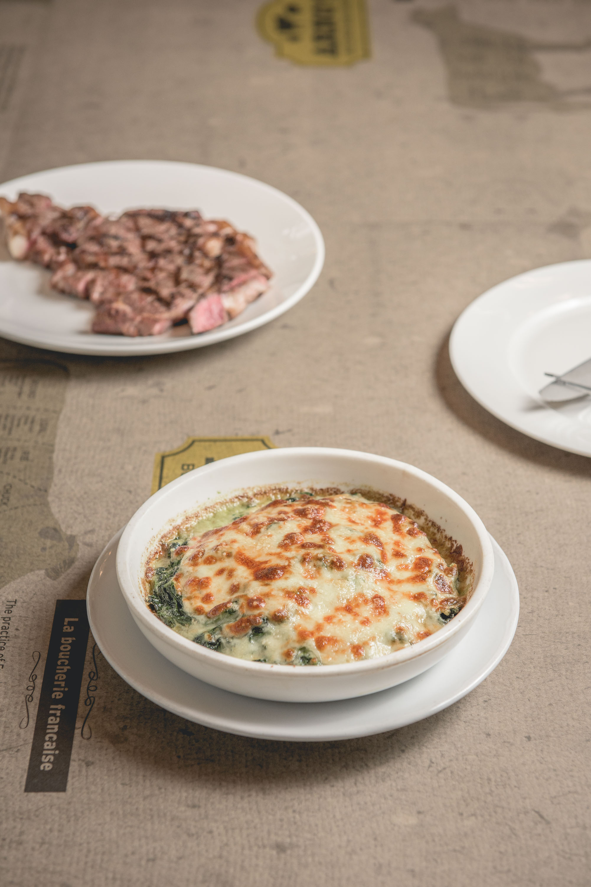 ทางร้านยังแนะนำให้สั่ง Spinach with Cheese (150 บาท) ผักโขมที่นำไปปรุงรส จากนั้นนำไปอบชีส เสิร์ฟมาร้อน ๆ