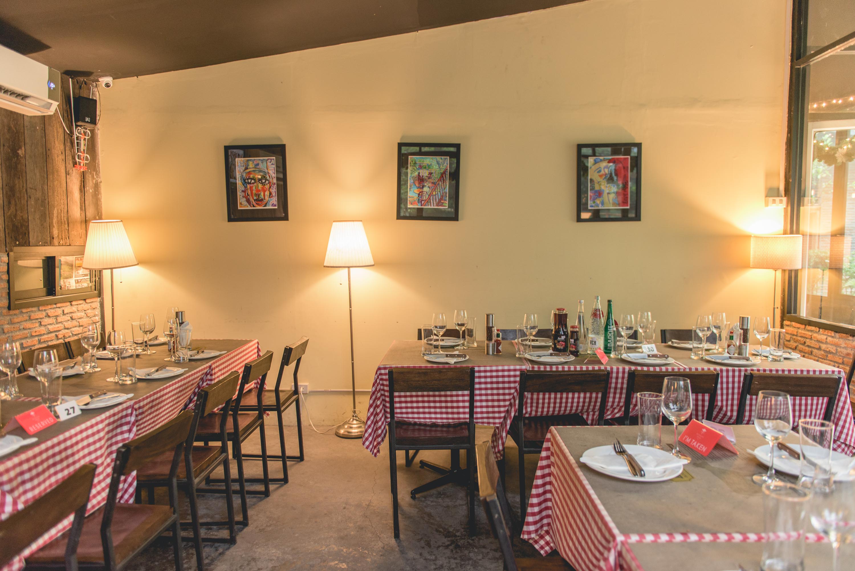 ภายในร้าน Arno's Butcher and Eatery ถูกตกแต่งมาในสไตล์ Casual แบบเรียบง่าย แต่มีสไตล์ เพิ่มดีเทลด้วยการใช้ผนังอิฐ ทำให้ดูคลาสสิค และอีกฝั่งได้ใช้กระจกในการออกแบบทำให้ร้านดูโล่ง โปร่ง สบาย ทำให้มองวิวจากภายนอกได้ อีกทั้งยังใช้โต๊ะไม้คลุมด้วยผ้าคลุมโต๊ะลายสก๊อตสีแดง ทำให้บรรยากาศของร้านดูเหมือนให้เป็นเหมือนบ้านที่ดูอบอุ่น