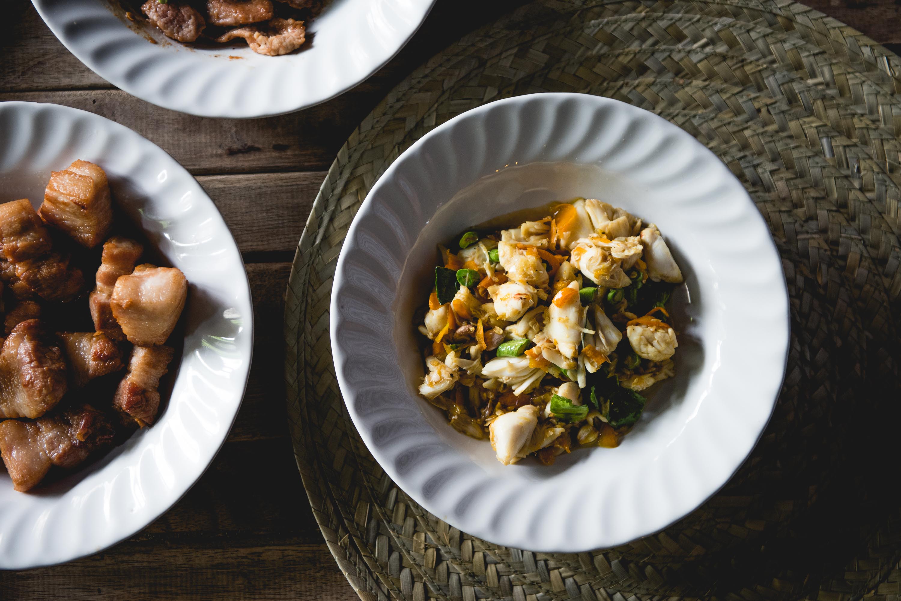 และอย่าลืมสั่ง ปูจ๋า (80 บาท/กระดอง) เมนูสมัยเด็กที่นำหมูสับมาหมักผสมกับเนื้อปูเน้น ๆ ก่อนจะนำไปนึ่งแล้วทอดจนสุกเหลือง ทานกับน้ำจิ้มบ๊วยหวาน ๆ ได้อย่างเข้ากัน