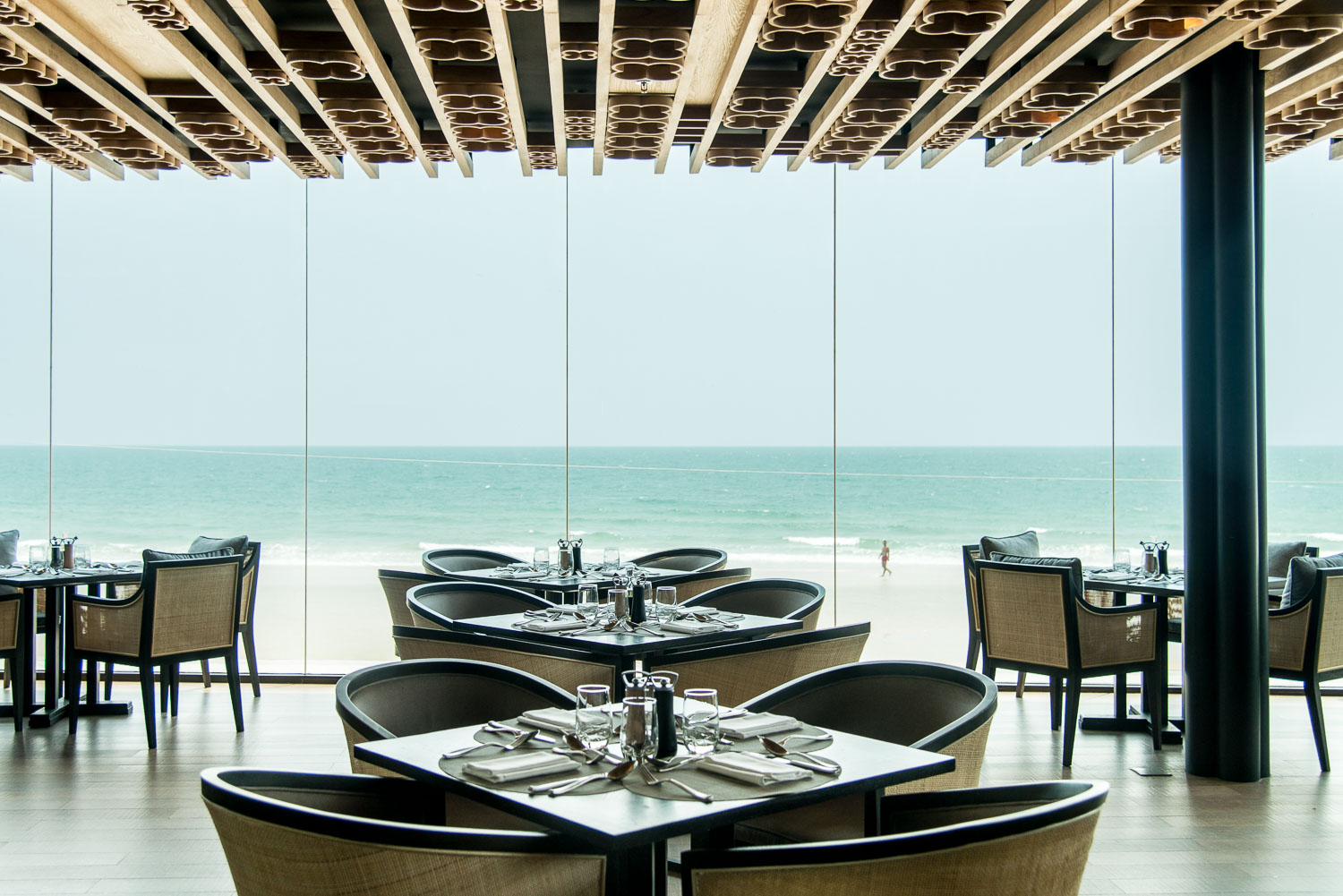 ภายในถูกตกแต่งแบบเรียบหรู แฝงลุคขรึม ๆ ด้วยการใช้เฟอร์นิเจอร์ไม้และโทนสีเข้มเป็นหลัก บนเพดานเป็นไม้รูปดอกพิกุลที่เป็นสัญลักษณ์ประจำโรงแรม แสดงถึงความอุดมสมบูรณ์ของทุกอย่างได้เป็นอย่างดี และที่นี่ยังถูกออกแบบมาในลักษณะคล้าย Glasshouse ให้มองเห็นวิวสวย ๆ ของทะเลรวมถึงกิจกรรมริมชายหาดระหว่างทานอาหาร