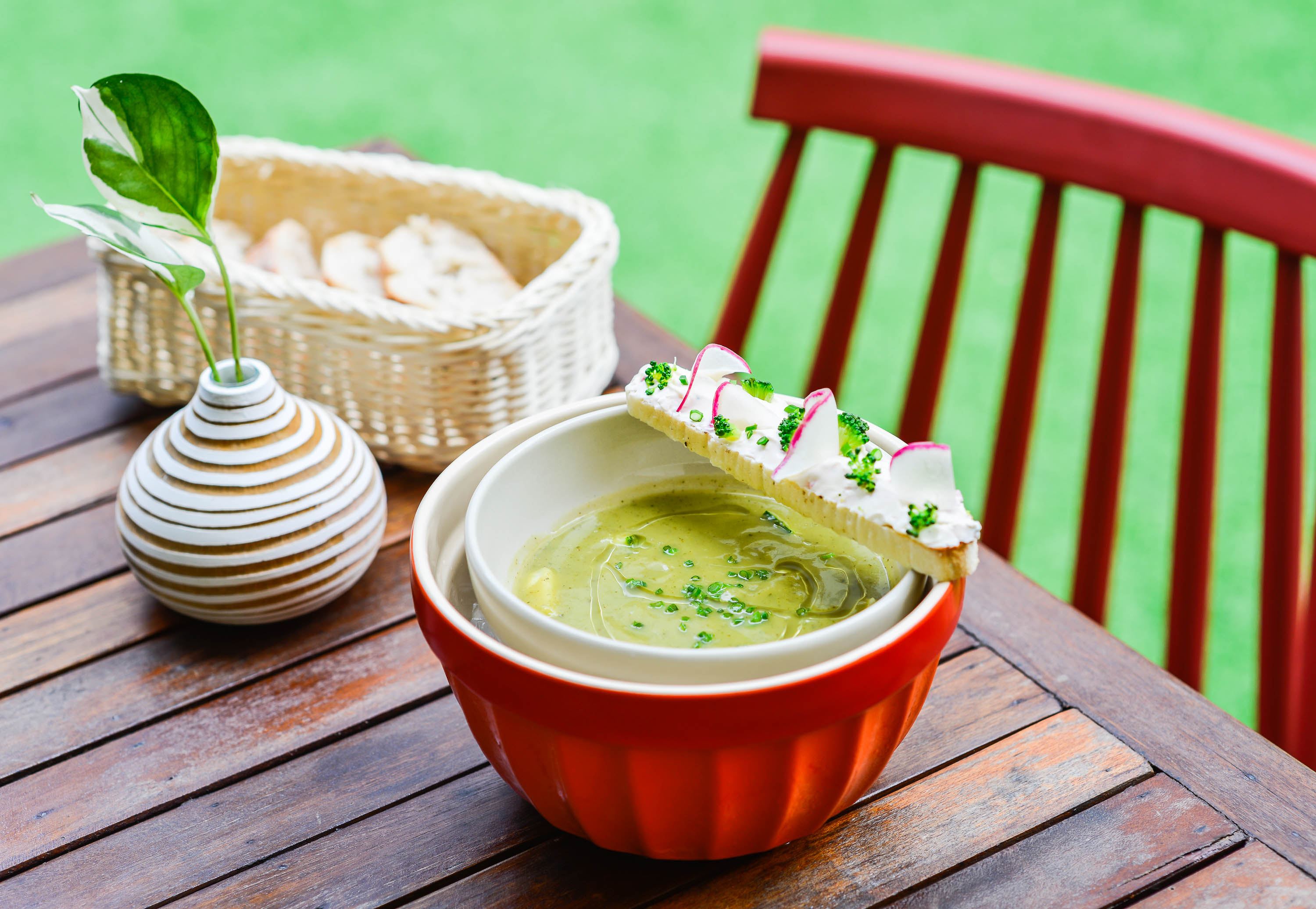 อีกหนึ่งเมนูทานเล่นรองท้อง ลองสั่ง Seabass Carpaccio (230 บาท) ปลากระพงขาวแล่บางหมักซอสโหระพา มะกรูด และมะนาว เพิ่มรสเปรี้ยวหวานจากธรรมชาติด้วยมะม่วงดิบและมะม่วงสุกด้วยความที่กรุงเทพฯ มีอากาศร้อน เชฟนิโคลัสเลือกที่จะครีเอทเมนูซุปเย็นเพื่อให้เข้ากับบรรยากาศ Zucchini Soup & Broccoli Tartine (180 บาท) ซุปเย็นที่เสิร์ฟในชามที่เต็มไปด้วยน้ำแข็งเพื่อให้ตัวซุปมีความเย็นคงที่เสมอ ซุปตัวนี้เป็นซุปข้นที่ใส่เนื้อซุกกีนี่พร้อมกับโหระพา โรยหน้าด้วยน้ำมันมะกอก มาพร้อมขนมปังทาครีมชีสและบร็อคโคลี่ต่อกันที่อาหารจานหลักอย่างอาหารทะเล Grilled Grouper Vierge (270 บาท) สเต๊กปลาเก๋าจี่เตาเหล็กร้อน ๆ ทานคู่กับ Vierge Sauce ที่ทำจากมะเขือเทศ มะกอกดำ โหระพา และน้ำมันมะกอก แนะนำให้สั่ง Veggies (90 บาท) ผักรวมมิตรสไลซ์เส้นยาวผัดเนยต้นหอม ตัดกับรสชาติจากปลาได้ดีมาถึงของหวานกันบ้าง ที่ไม่ควรพลาด คือ Tropical Sin (150 บาท) เหมาะสำหรับผู้ที่ชื่นชอบรสชาติเข้มข้นของผลไม้ เพราะเชฟนำสับปะรด กล้วย และมะม่วงไปเคลือบน้ำตาลไหม้ร้อน ๆ ซึ่งเข้ากันได้ดีกับไอศกรีมวานิลลาและครัมเบิลมะพร้าวที่เสิร์ฟมาคู่กัน
