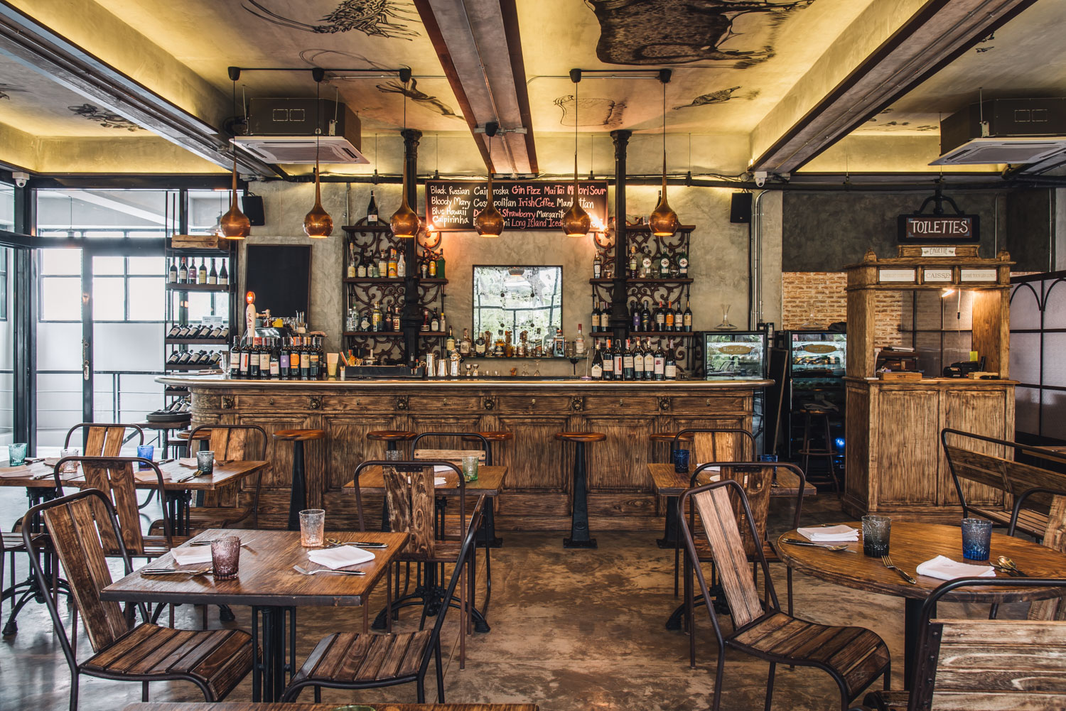 สำหรับตัวร้านถูกสร้างขึ้นใหม่ทั้งหมดและแบ่งออกเป็นโซนร้านอาหารบรรยากาศสบาย ๆ ที่รายล้อมด้วยวิวต้นไม้สีเขียว ตกแต่งด้วยเฟอร์นิเจอร์ไม้ที่ทางร้านออกแบบเองและสั่งทำจากเกาะชวา อินโดนีเซีย ให้ลุคเรียบเท่ ดูโปร่งโล่งด้วยหน้าต่างใสบานใหญ่ มีที่นั่งให้เลือกทั้งด้านในร้านและด้านนอกร้าน