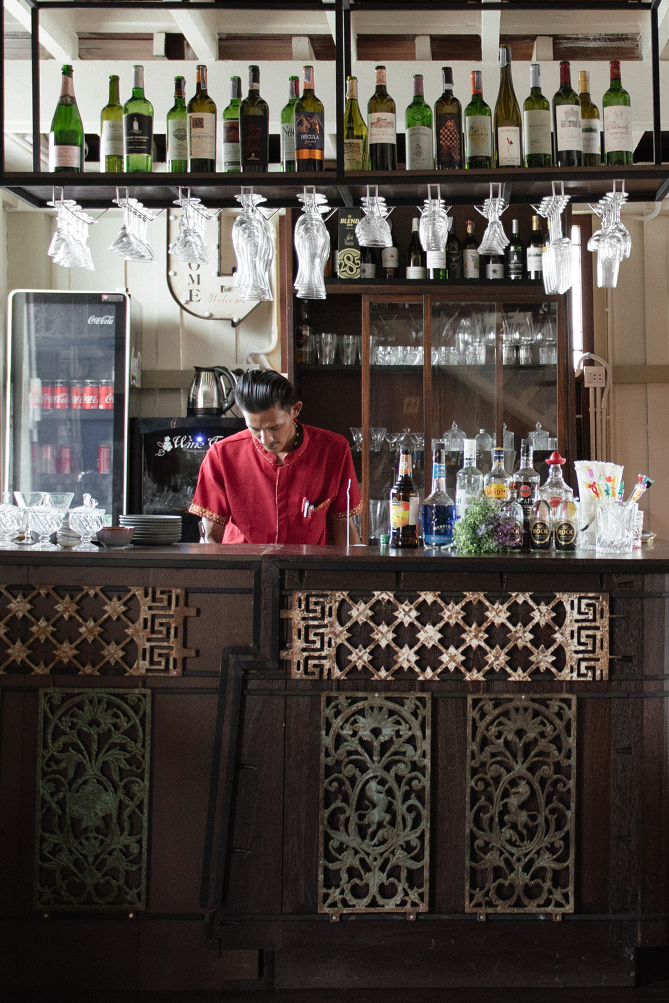 บรรยากาศภายในบ้านเต็มไปด้วยความคลาสสิก จากแผนผังโครงสร้างเดิมของบ้านที่เลือกใช้วัสดุไม้เป็นหลัก ดีไซน์ทันสมัยช่วยให้ลมเย็น ๆ พัดพาอากาศดี ๆ ริมน้ำเข้าสู่ตัวบ้านได้ตลอดทั้งวัน อีกทั้งยังตกแต่งด้วยเฟอร์นิเจอร์ไม้ดีไซน์สวย เคาน์เตอร์บาร์ไม้ฉลุลายอย่างละเอียด ประดับด้วยข้าวของเครื่องใช้ในอดีตที่ทิ้งไว้จากเจ้าของเดิม รวมทั้งรูปภาพจิตรกรรมสวยบนกรอบรูปที่เล่าเรื่องราวของบ้านได้เป็นอย่างดี