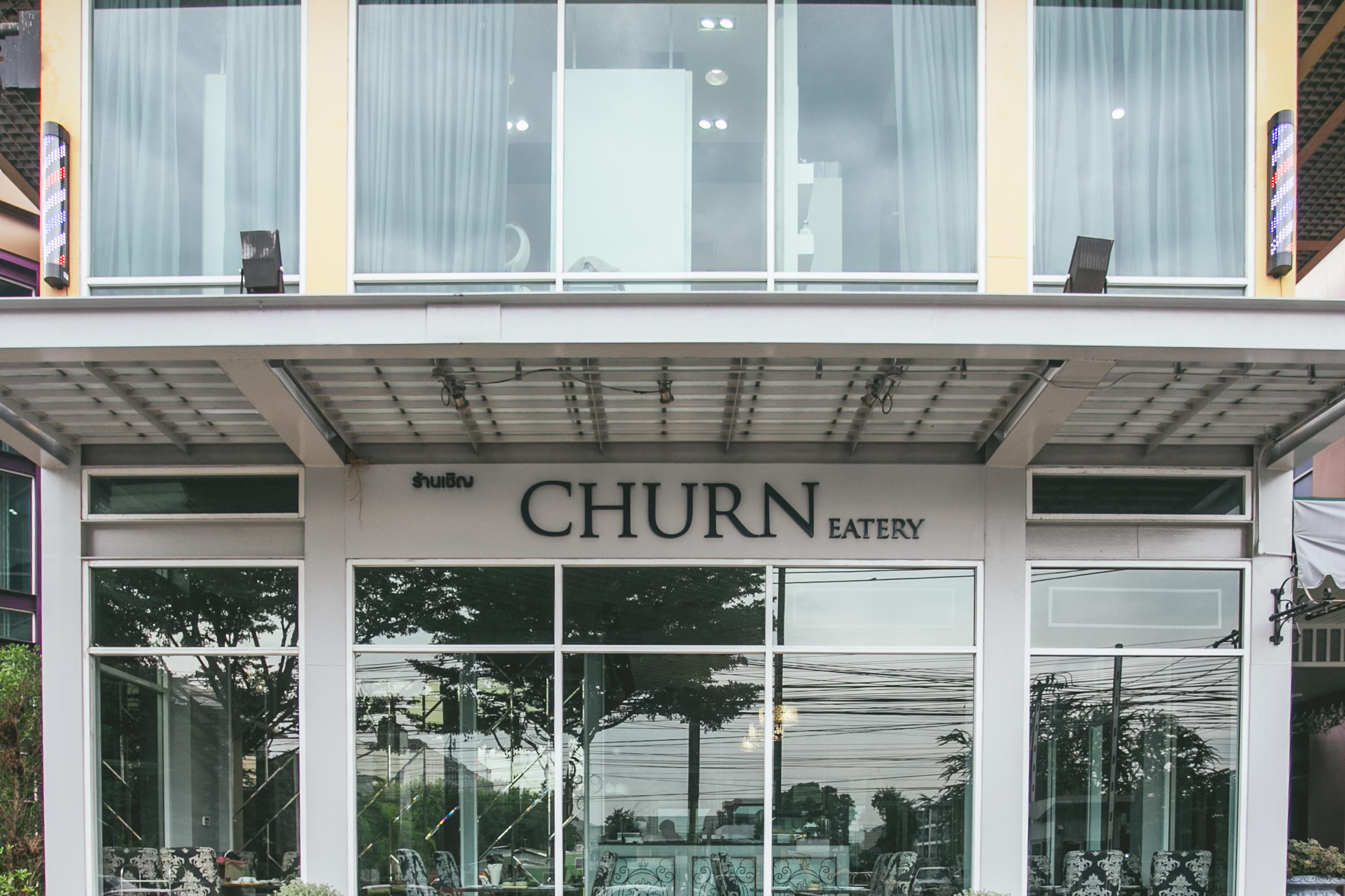 จากประสบการณ์การทำงานด้านโรงแรมประกอบกับความชอบอาหารไทยของ คุณปุย-สุธาสินี เด่นไพโรจน์ศักดิ์ เจ้าของร้าน Churn Eatery จึงเป็นร้านอาหารไทยที่ครีเอทเมนูให้ร่วมสมัยและคงรสชาติไทยในแบบท้องถิ่นท่ามกลางบรรยากาศสบาย ๆ เหมาะมาทานกันเป็นครอบครัว ด้านในตกแต่งดีไซน์ร้านโดยใช้โทนสีขาวและสีเทาเป็นหลัก พร้อมเพิ่มความสดชื่นสบายตาด้วยแมกไม้ มีบ่อปลาคาร์ฟล้อมรอบให้ได้มองเพลิน ๆ เป็นการมอบช่วงเวลาแห่งความสุขให้กับทุกครอบครัว