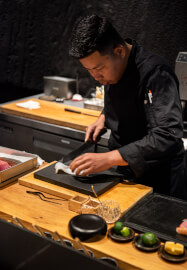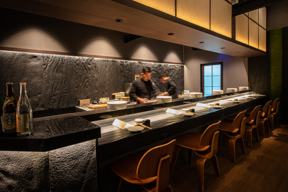 ถัดมาในโซนของเคาน์เตอร์บาร์ซูชิ ทางร้านก็พร้อมรองรับสำหรับคนที่ต้องการสัมผัสประสบการณ์ทานอาหารสุดพิเศษในรูปแแบบโอมากาเสะ ท่ามกลางบรรยากาศของกลิ่นอายสไตล์อิซากายะที่มีชีวิตชีวา สังสรรค์กันแบบสบาย ๆ และเป็นกันเอง โดยสามารถแพริ่งคอร์สอาหารควบคู่ไปกับสาเกหรือเครื่องดื่มอื่น ๆ ตามชอบที่ช่วยเสริมรสชาติในการรับประทานอาหารให้สมบูรณ์แบบยิ่งขึ้นได้อีกด้วย