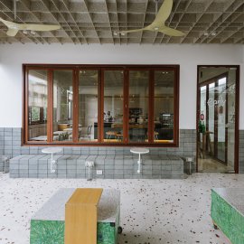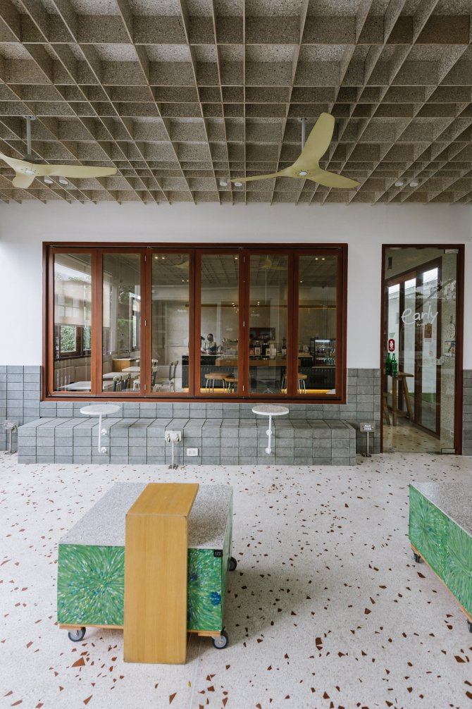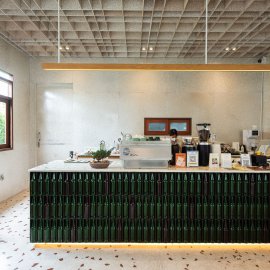 บรรยากาศของร้านอบอุ่นเหมือนบ้าน โดยคุณเค-เคฑิตา ชัยศักดิ์ศิริ หนึ่งในเจ้าของ เล่าให้เราฟังในเรื่องของการตกแต่ง เพราะทางร้านเลือกใช้วัสดุรีไซเคิลและ Upcycling แทบทุกชิ้น ตั้งแต่หน้าต่างเก่า กล่องนม ไปจนถึงอิฐจากขยะรีไซเคิลอีกทั้งยังมีเมนูที่เน้นลดขยะทั้งกาแฟ ขนมและอาหารจานหลักพร้อมเสิร์ฟในบรรยากาศสุดโฮมมี่