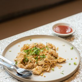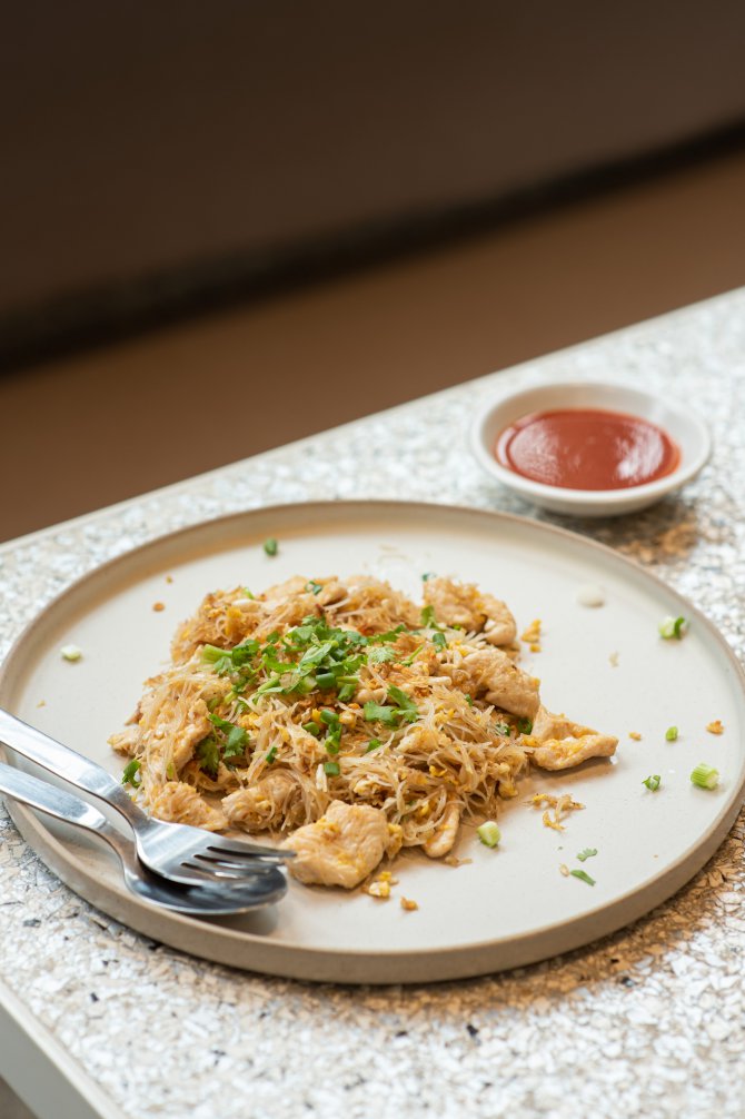 ปิดท้ายกันด้วยเมนูโฮมมี่ที่มาพร้อมรสชาติในของวัยเด็กอย่าง เส้นหมี่ไก่ผัดแห้ง (160 บาท) ก็ทานเพลินไม่แพ้กัน จานนี้เป็นเส้นหมี่ขาวผัดเข้ากับไข่และเนื้อไก่นุ่ม ๆ ปรุงรสมาแบบพอดี ทานเพลินแถมอิ่มท้องแน่นอน