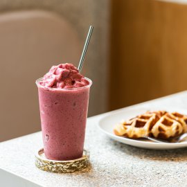 หรือจะเป็นเมนู Mixed Berry Smoothie Yogurt (130 บาท) ก็เหมาะกับคนรักความเฮลตี้ เพราะแก้วนี้มาพร้อมเหล่าเบอร์รี่ปั่นเข้ากับโยเกิร์ตจนเนียนละเอียด นอกจากจะไดความสดชื่นแล้วยังได้ประโยชน์ดี ๆ ให้ร่างกายอีกด้วย