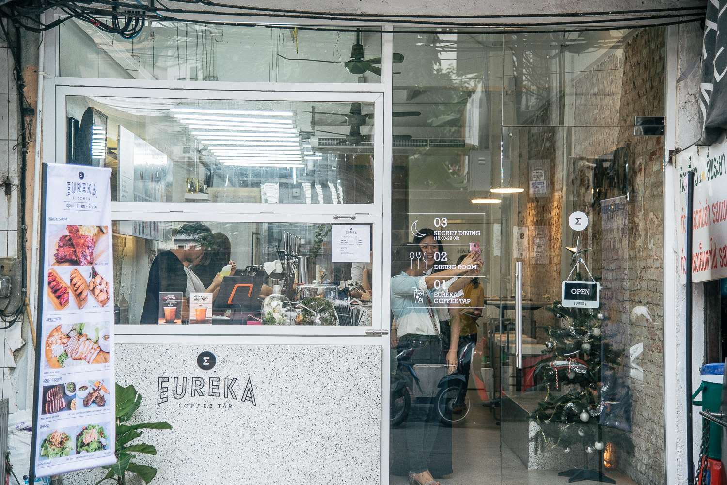 ตัวร้านแบ่งออกเป็น 3 ชั้น โดยชั้นล่างสุดจะเป็นโซนคาเฟ่ Eureka Coffee Tap ชั้น 2 เป็นโซน Eureka Kitchen และชั้น 3 เป็นโซน Secret Dining บริเวณโซนคาเฟ่ ทางร้านเลือกใช้สีขาวเป็นหลัก ทำให้ร้านดูกว้างไม่อึดอัด บริเวณผนังร้านมีการขัดเอาสีออกเพื่อเปิดให้เห็นโครงผนังอิฐของทางร้าน ซึ่งเป็นหนึ่งในคอนเซ็ปต์การตกแต่งร้านที่ต้องการเปิดเผยให้เห็นวัสดุเนื้อแท้และธรรมชาติมากที่สุด
