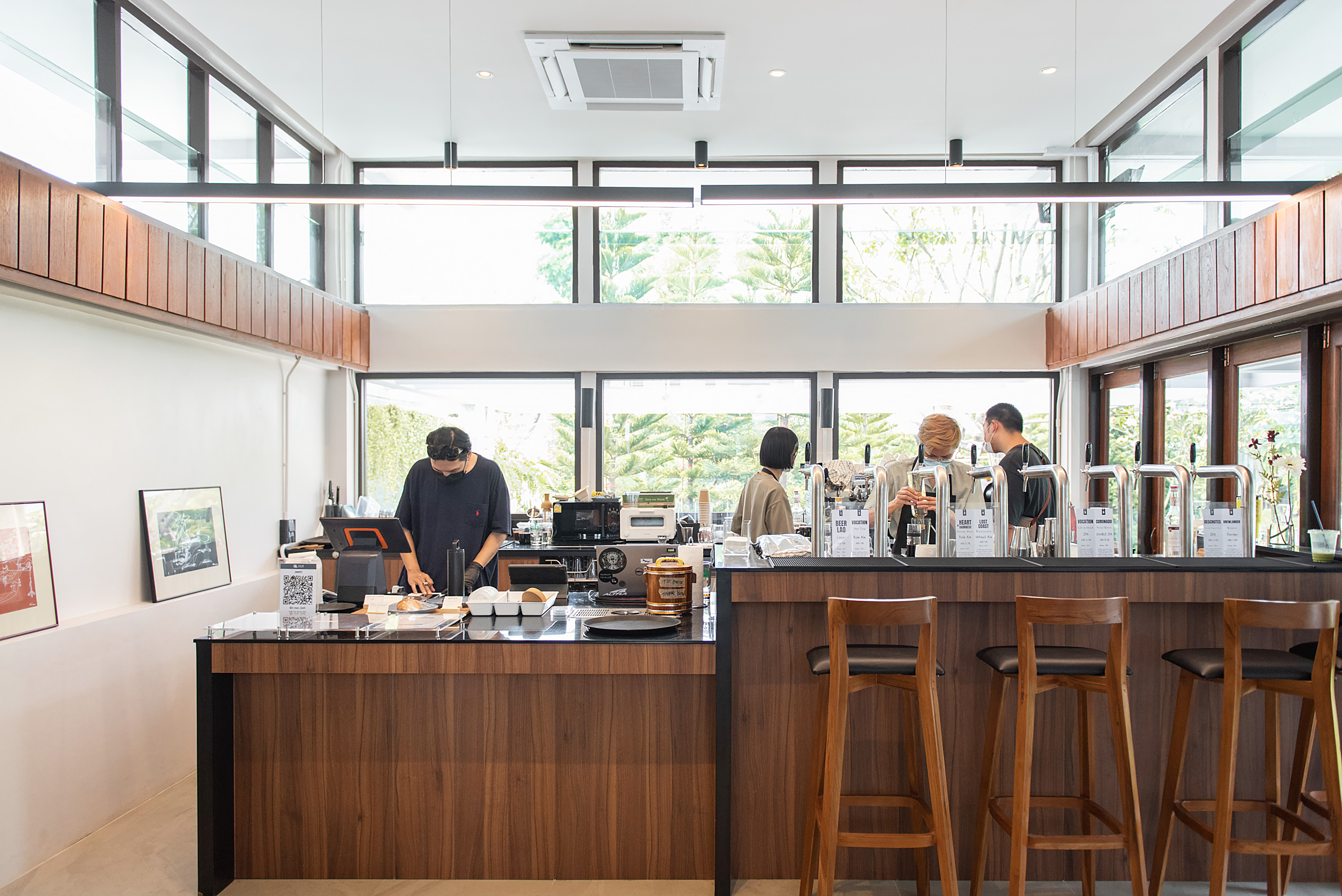ทางด้านบรรยากาศเต็มไปด้วยความโฮมมี่จากโครงสร้างเดิมของบ้านหลังเก่าเกือบทั้งหมด โดยบ้านหลังนี้ทางคุณพ่อของคุณเอิร์จได้ซื้อต่อมาจากอาจารย์บุญส่ง โรหิตะสุข อดีตอาจารย์คณะสถาปัตยกรรมศาสตร์ จุฬาฯ ที่สร้างเมื่อ พ.ศ. 2514 ทำให้ที่นี่เต็มไปด้วยงานออกแบบสไตล์โมเดิร์นยุค 70 นั่นเอง มีหลากหลายมุมที่นั่งให้เลือกจับจองกันตามชอบ ทั้งโต๊ะใหญ่เอาใจชาวแก๊ง โต๊ะเล็กแบบส่วนตัว หรือจะเป็นโซน Out Door ก็ชิลล์ไม่แพ้กัน โดยด้านในบ้านเต็มไปด้วยกลิ่นอายของยุค Mid-Century ที่หลายคนหลงรัก