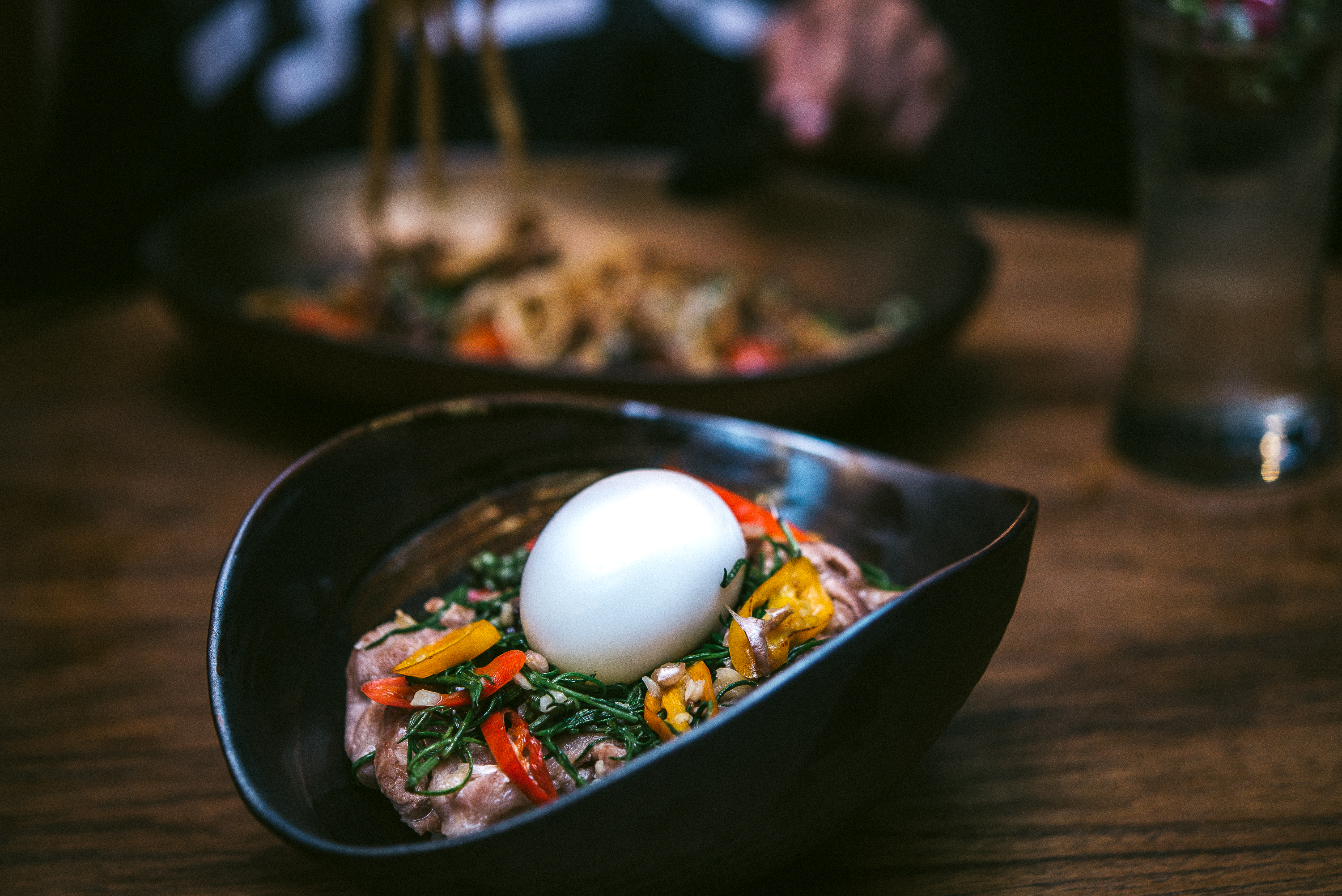 Freshly Smoked Nordic (450 บาท) แซลมอนสดรมควัน เสิร์ฟพร้อมส้มซันคิส บ๊วย และเลมอนที่เรียกความสดชื่นได้ทันทีเมื่อทาน เอาใจสายเนื้อด้วยเมนู Pasta (kak kak) (340 บาท) พาสต้าเนื้อตุ๋นกับกากเนื้อ เนื้อสามชั้นหนานุ่มจากอเมริกาตุ๋นกับซอสไวน์แดงจนชุ่มฉ่ำรวมเข้ากับเส้นเฟตตูชินี่ และโรยหน้าด้วยกากเนื้อให้รสชาติกรุบกรอบ