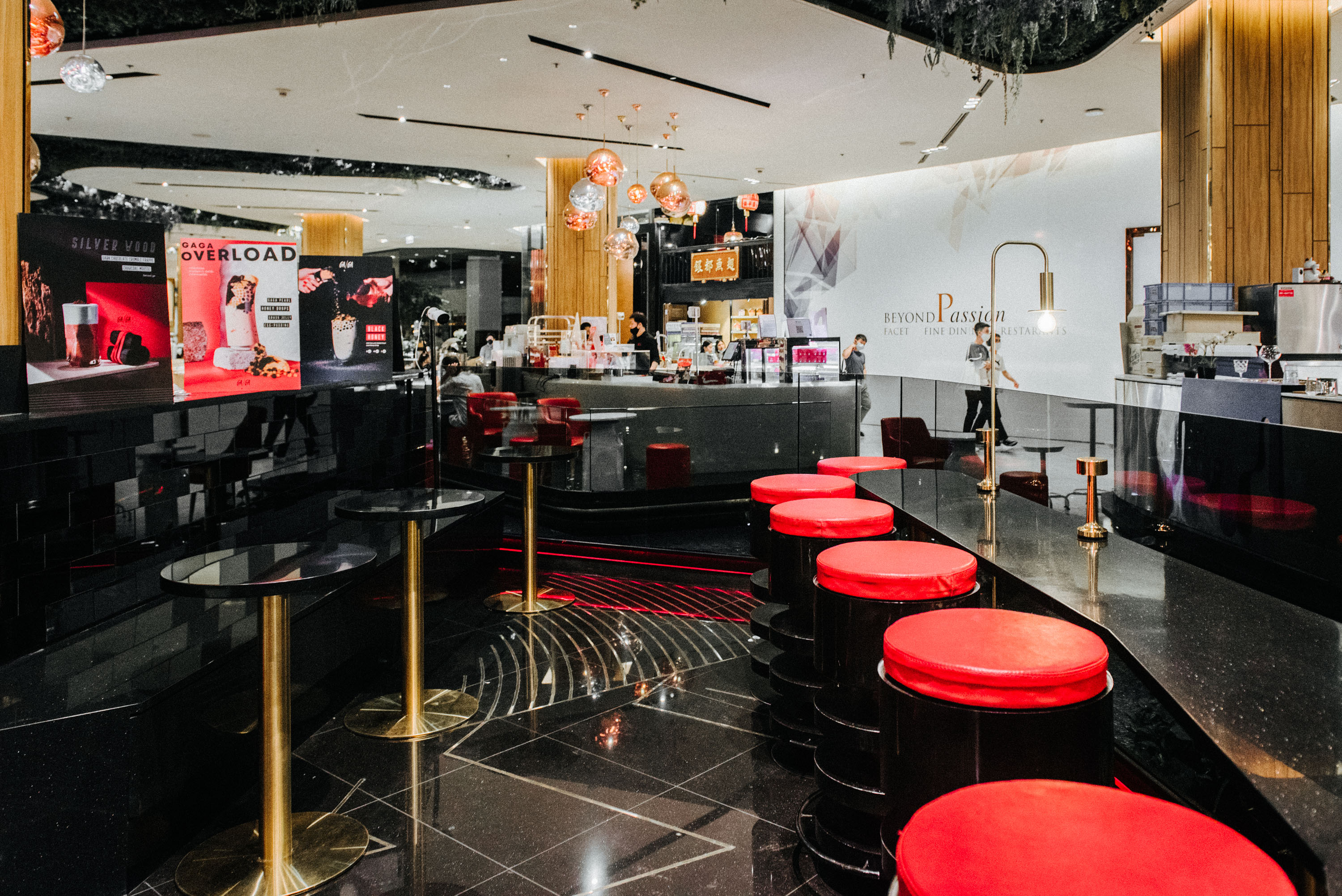 หากเดินมาบริเวณชั้น G โซน Gourmet Garden Zone จะพบกับสาขาใหม่ล่าสุดของ GAGA โดดเด่นด้วยคาแร็กเตอร์ของร้านที่ทันสมัยโดนใจวัยรุ่น ออกแบบมาในสไตล์เรียบหรู ซึ่งเน้นการคุมโทนสีดำตัดกับแดงเป็นหลัก เข้ากับความหรูหราของ Siam Paragon เป็นอย่างดี อีกทั้งยังมีมุมบาร์ที่นั่งเก๋ ๆ พร้อมต้อนรับให้เหล่า Bubble Milk Tea Lover ได้เพลิดเพลินไปกับเครื่องดื่มและขนมหวาน ท่ามกลางบรรยากาศสบาย ๆ ภายในร้าน