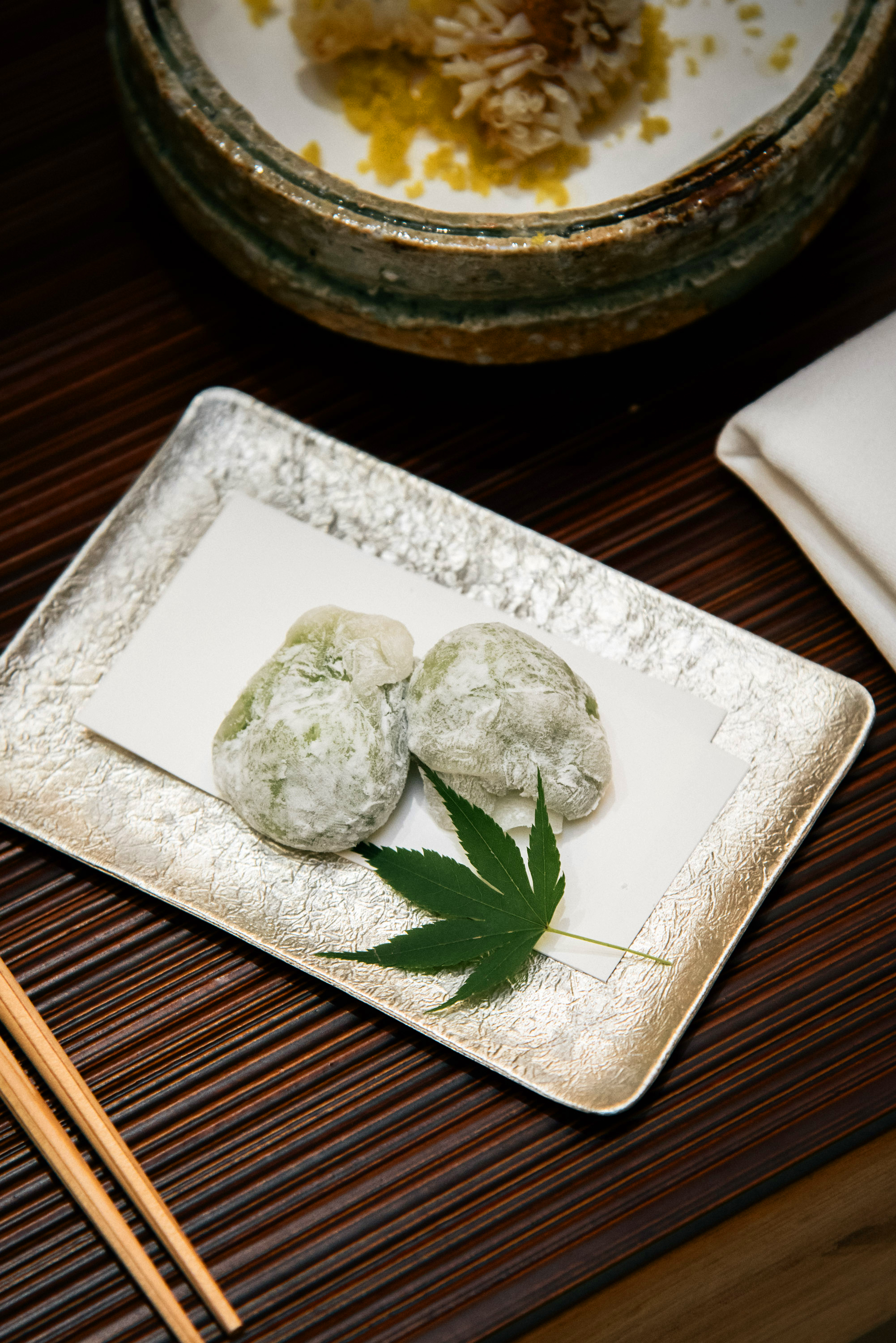 ปิดท้ายด้วยขนมหวานอย่าง โมจิไอศกรีมชาเขียว แป้งโมจินุ่ม ๆ สอดไส้ไอศกรีมชาเขียวรสเข้มข้น