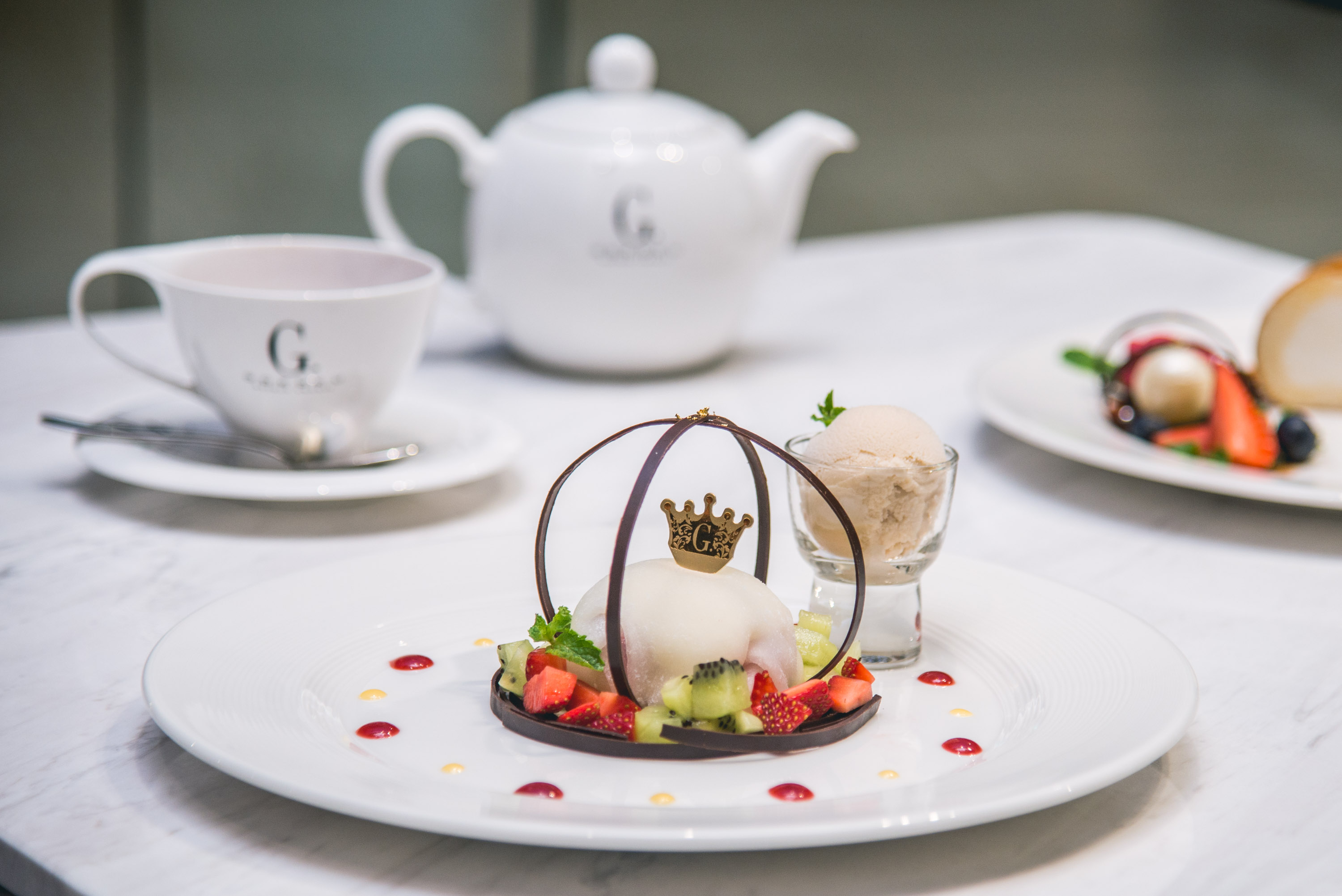 มาเริ่มที่เมนูซิกเนเจอร์ของ Gokoku อย่าง Roll Cake Set (195 บาท) เนื้อสปันจ์เค้กนุ่มเบา สอดไส้ด้วยครีมนมสด มีจุดเด่นอยู่ที่เนื้อครีมจะละลายในปาก ไม่มัน เสิร์ฟพร้อมไอศกรีมสูตรพิเศษของทางร้านที่มีให้เลือกทั้ง Premium Extract Vanilla และ English Earl Grey