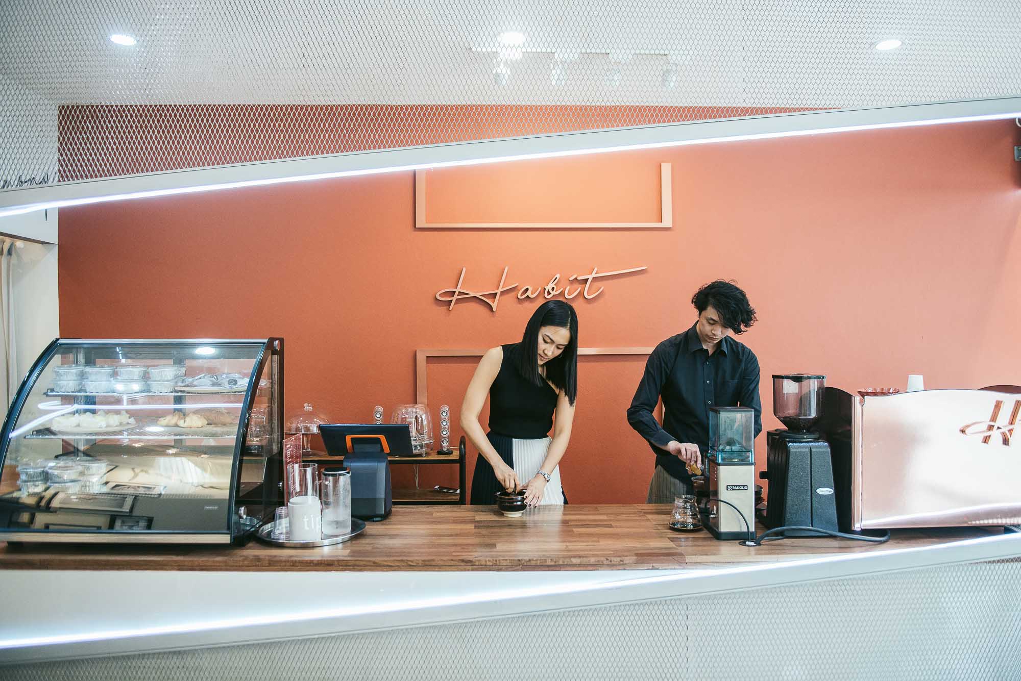 Habit ร้านกาแฟเปิดใหม่ โดดเด่นด้วยสีขาวสะอาดตาปนกับความอบอุ่นของสีไม้ ในซอยทองหล่อ 13 ชักชวนให้เข้าไปสั่งกาแฟดี ๆ ดื่มสักแก้ว ภายใต้คอนเซ็ปต์ Make Habit Your Habit ที่คุณแนนเจ้าของร้านอธิบายไว้ว่าเป็นการทำร้านกาแฟแบบที่เอานิสัยการดื่มกาแฟของแต่ละคนมารวมกัน เพราะบางคนชอบดื่มกาแฟนมตอนเช้า หรือดื่มกาแฟดำตอนบ่าย ที่นี่จึงถือเป็นการแนะนำพฤติกรรมการทานกาแฟแบบใหม่ ๆ ให้ได้ลองกัน