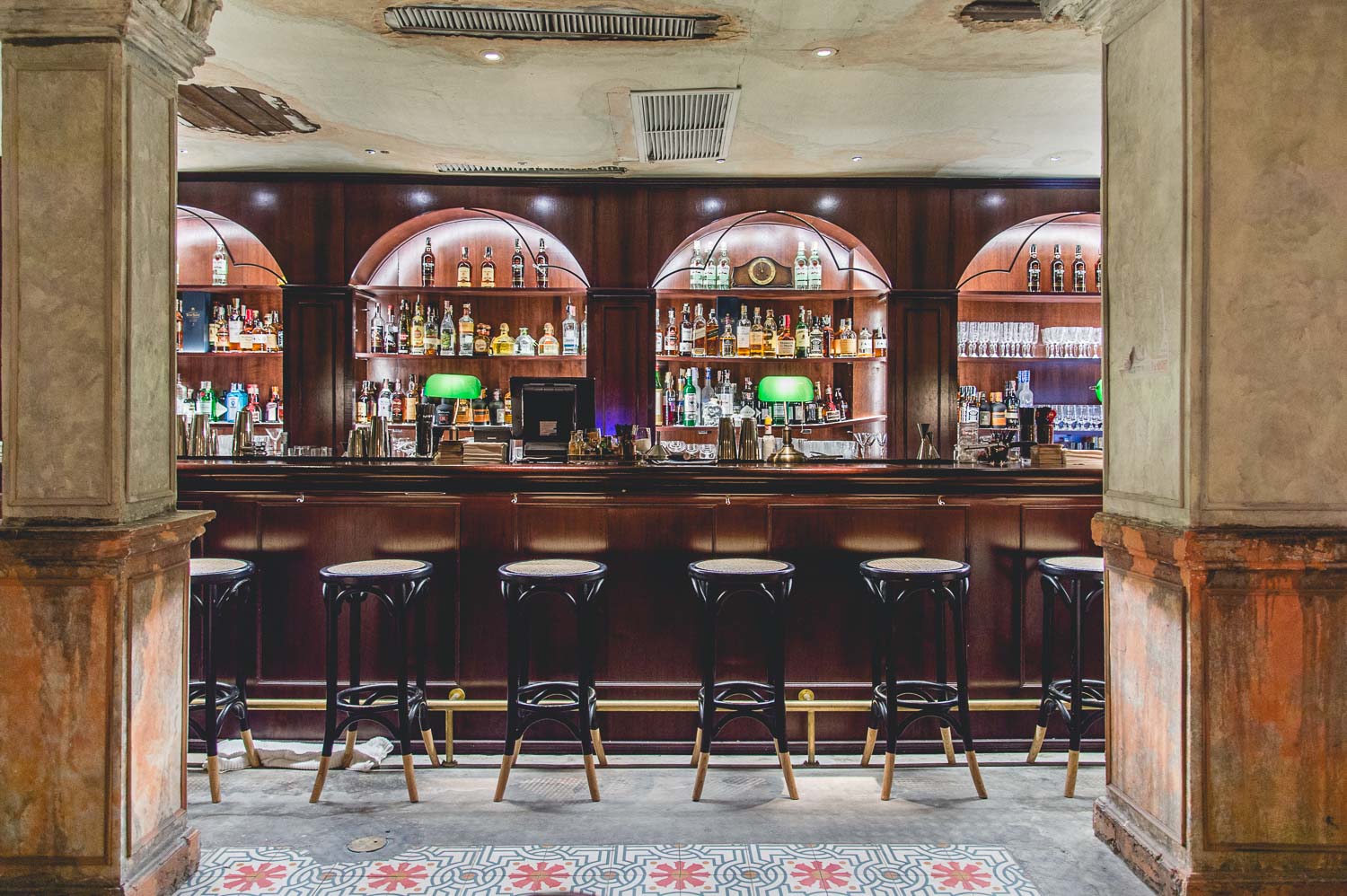 ภายใต้แสงสลัว ๆ นี้ เราจะสัมผัสได้ถึงบรรยากาศที่แปลกตา บาร์ไม้ขนาดใหญ่และเก้าอี้สตูลหวายให้ลุคขรึม ๆ ปนกับความหรูหราเล็กน้อย ผนังของร้านถูกทำให้ดูเก่าด้วยสีทึม ๆ ที่พื้นก็เล่นกับเท็กซ์เจอร์ที่แตกต่าง มีทั้งพื้นไม้และกระเบื้องลวดลายสวยงาม เพิ่มสีสัน ส่วนเฟอร์นิเจอร์และของตกแต่งอื่น ๆ เช่น กรอบรูป โคมไฟ ก็จะเป็นของวินเทจที่ช่วยทำให้บรรยากาศโดยรวมของร้านดูน่าสนใจเหมือนหลุดเข้าไปอยู่ในยุค '40s จริง ๆ