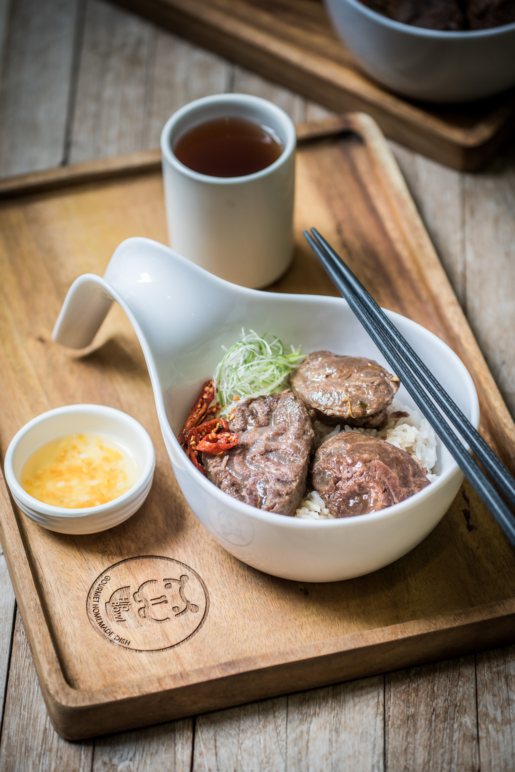 เอกลักษณ์ของ Hip Bowl นอกจากจะดึงดูดด้วยคาแรกเตอร์ฮิปโปสุดน่ารักคู่กับชามใบใหญ่บนโลโก้ร้าน ยังเป็นที่มาของชื่อและเมนูตุ๋นสุดพรีเมียมที่เสิร์ฟมาในชามที่ออกแบบมาพิเศษเฉพาะ แน่นอนว่าเมนูตุ๋นของ Hip Bowl ไม่เหมือนใคร เพราะกว่าจะมาเป็นเนื้อตุ๋นสุดพิเศษพร้อมเสิร์ฟ ต้องผ่านกรรมวิธีที่พิถีพิถัน ตั้งแต่การเลือกวัตถุดิบที่ดีที่สุดทั้ง เนื้อวัว หมู และไก่คุณภาพดี ก่อนใช้ความเชี่ยวชาญในการตุ๋นเป็นพิเศษด้วยเครื่องปรุงหลากชนิดนานกว่า 6 ชั่วโมง จนได้น้ำสตูว์ที่หอมเข้มข้น เนื้อนุ่มพอดีจนแทบละลายในปาก และรสชาติกลมกล่อมทันสมัยโดยไม่ทิ้งกลิ่นอายความเป็นอาหารจีน