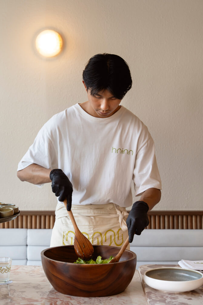 ร้าน HNINN มาพร้อมความตั้งใจดีในการถ่ายทอดมรดกทางวัฒนธรรมอาหารพม่าแบบดั้งเดิมมาผสมผสานเข้ากับความโมเดิร์นและเทคนิคตะวันตก สามารถรับประทานได้ตลอดทั้งวัน (All-day Dining) ตั้งแต่เช้าจรดค่ำ เพื่อให้เข้าถึงลูกค้าทุกกลุ่ม ทุกเพศ ทุกวัย ทั้งคนไทยและชาวต่างชาติ โดยยังคงรากเหง้าของวัตถุดิบและรสชาติดั้งเดิมไว้ แล้วปรับรูปลักษณ์และการนำเสนอให้ทันสมัย สวยงาม และชวนรับประทาน ภายใต้การดูแลของ เชฟ Arkar ดีกรีแชมป์ MasterChef Myanmar Season 2 เพื่อให้อาหารทุกจานเข้าถึงง่าย ถ่ายรูปสวย แต่ยังคงรสชาติความเป็นต้นตำรับอาหารพม่า ทั้งในส่วนของเครื่องแกงและวัตถุดิบต่าง ๆ ไว้ได้อย่างสมบูรณ์