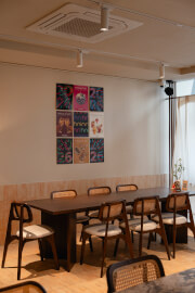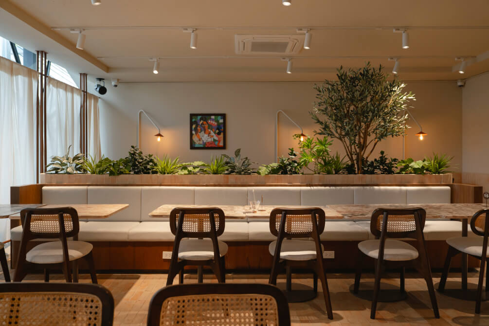 โดยเปิดโซนนั่งรับประทานอาหารให้ได้เอ็นจอยมื้ออาหาร ทั้งบริเวณชั้น 1 และชั้น 2 ให้เลือกสรรมากมายตามอัธยาศัย ขณะเดียวกันมีหลากหลายมุม Photogenic ให้ได้ถ่ายภาพสวย ๆ ซึ่งปรับเปลี่ยนไปตามเทศกาลต่าง ๆ สามารถรองรับได้มากถึง 50 คน นอกจากจะเปิดให้บริการในลักษณะของร้านอาหารแล้ว ช่วงกลางคืนทางร้านยังปรับมู้ดเป็นบาร์ที่พร้อมเสิร์ฟค็อกเทลให้ได้แฮงเอาต์ชิล ๆ อีกด้วย
