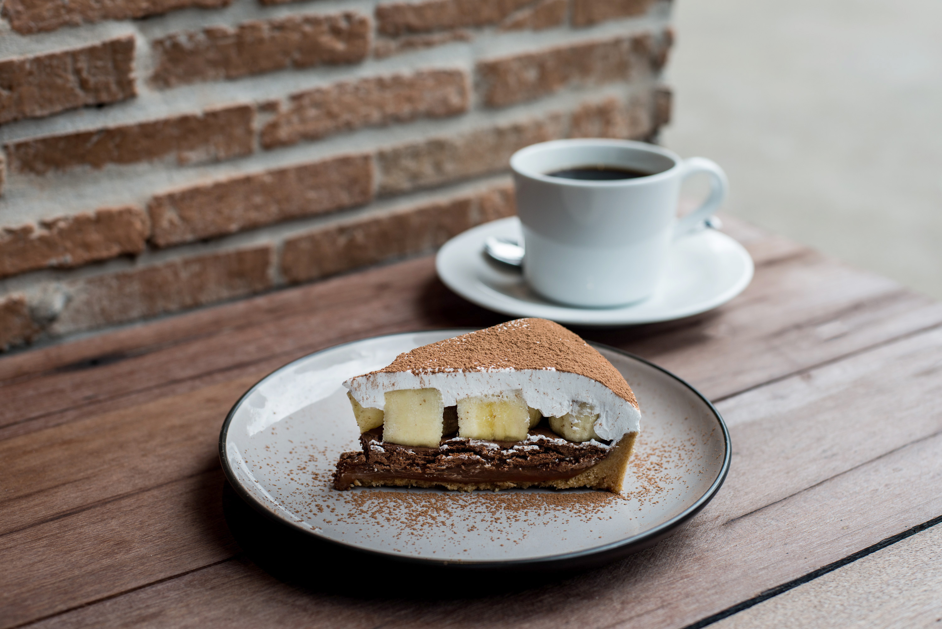 ต่อด้วยขนมโฮมเมดที่ทางร้านทำเอง เมนูแนะนำคือ Banoffee (125 บาท) บานอฟฟี่ที่ใส่กล้วยชิ้นใหญ่ หวาน กลมกล่อมด้วยคาราเมล ขมนิด ๆ จากช็อกโกแลต ท็อปครีมสดเนื้อเนียน นุ่ม ก่อนจะโรยผงโกโก้ เหมาะทานคู่กับกาแฟ