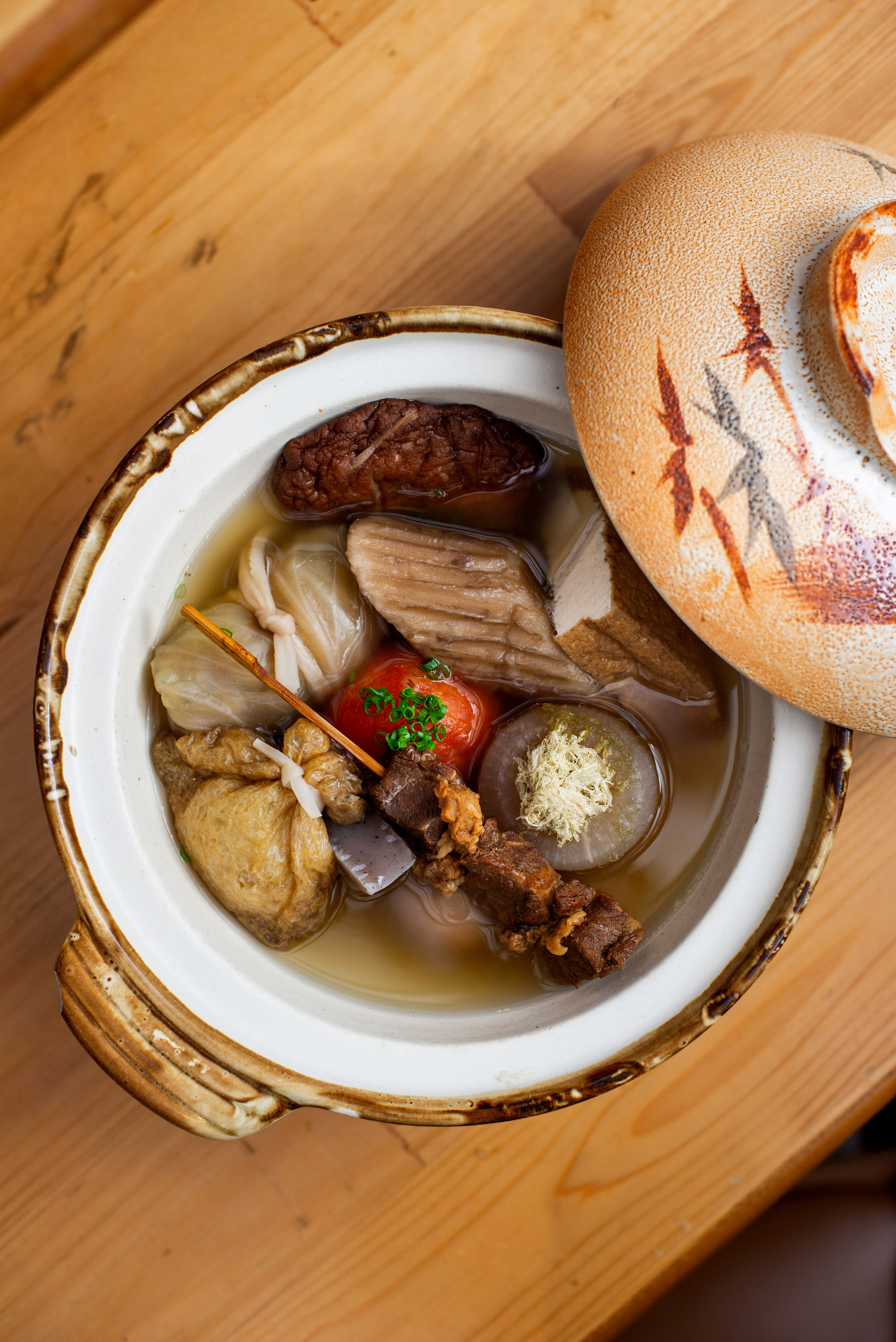 เริ่มต้นที่ Oden (550 บาท) โอเด้งหลากหลายแบบที่ทางร้านทำเองทุกอย่าง ตั้งแต่การคัดเลือกวัตถุดิบและลงมือทำเองทุกขั้นตอน ไปจนถึงไฮไลต์อย่างน้ำซุปที่มีรสชาติกลมกล่อม เพราะเชฟเลือกใช้แต่วัตถุดิบจากธรรมชาติ ผสานเข้ากับเกลือชั้นดี ซึ่งเคล็ดลับอีกอย่างหนึ่งในการพิสูจน์ความอร่อยของโอเด้งก็คือ ต้องเริ่มด้วยการชิมหัวไชเท้าและไข่ เพราะหากสองอย่างนี้อร่อย ก็เท่ากับว่าชิ้นอื่น ๆ ที่เหลืออร่อยอย่างไม่ต้องสงสัย