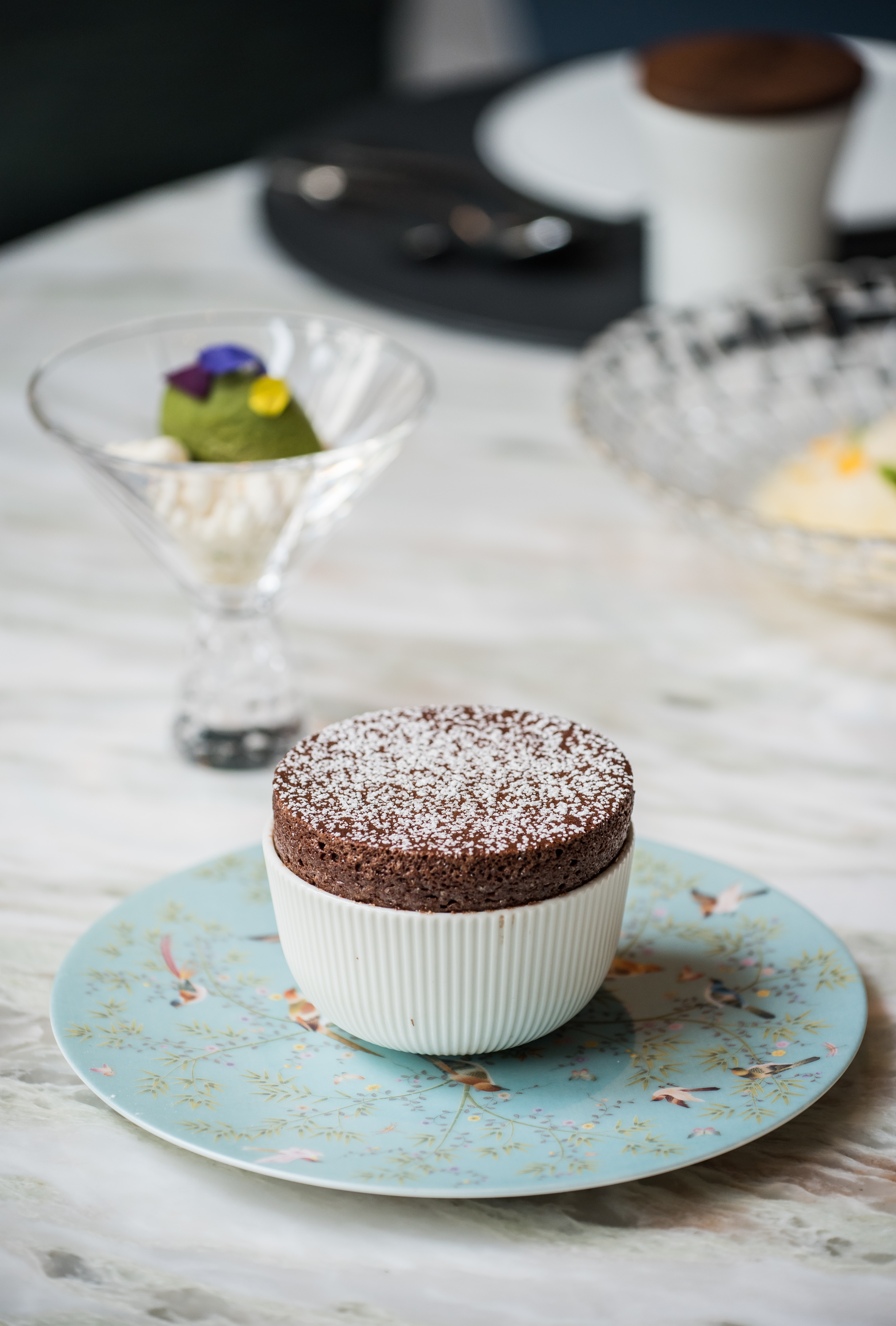ส่วนใครที่ชอบขนมหวานแบบคลาสสิก แนะนำ Chocolate Soufflé ซูเฟล่ช็อกโกแลตเข้มข้นที่อบมาอย่างพอดีจนได้เนื้อนุ่มฟู แต่ด้านในยังเป็นช็อกโกแลตลาวา ปิดท้ายด้วย Melon - Pickled - Almonds แตงโมและแคนตาลูปหั่นมาชิ้นพอดีคำ ได้รสหวานเย็นสดชื่น ก่อนจะเพิ่มรสสัมผัสด้วยอัลมอนด์