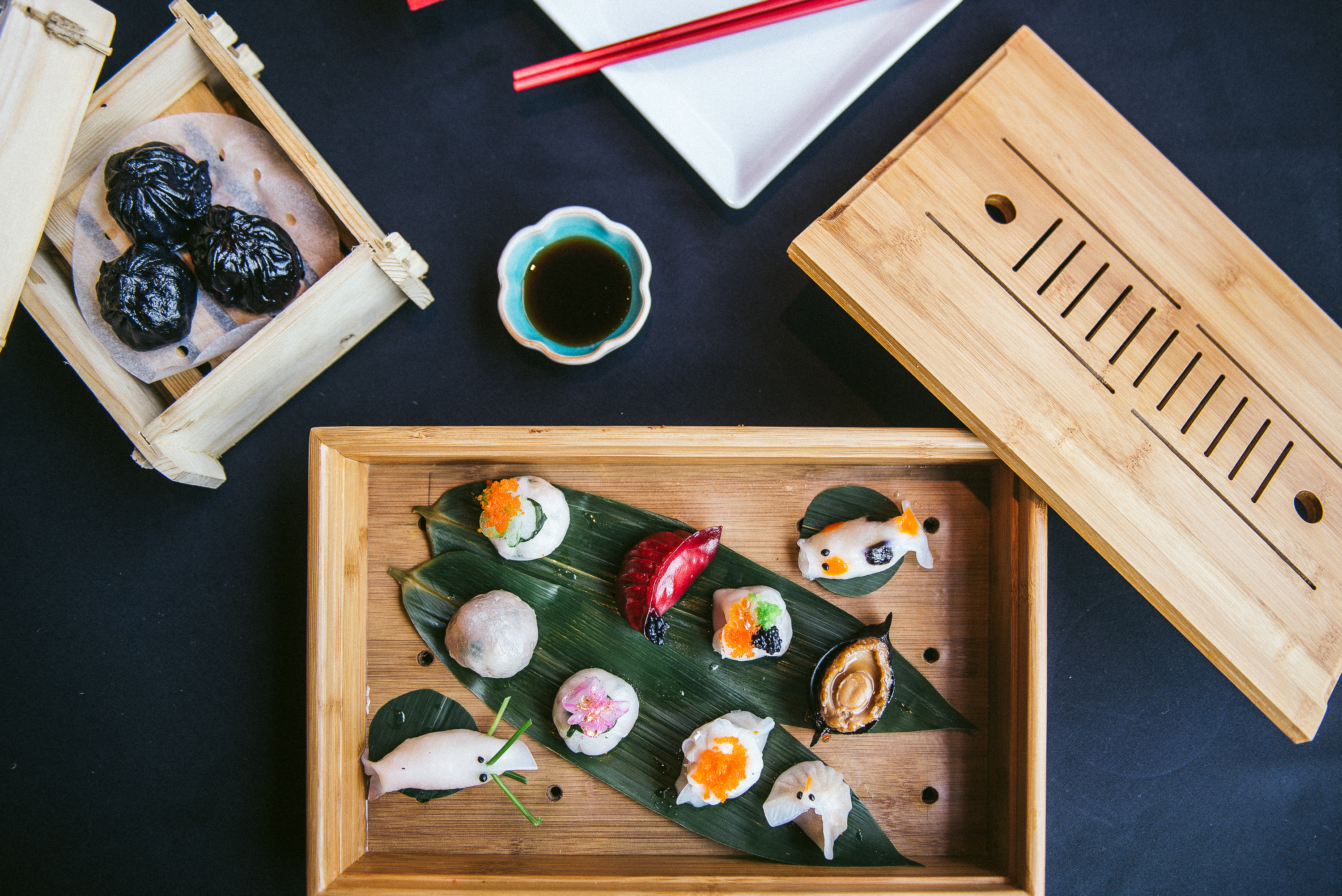 มาเริ่มด้วยเมนูติ่มซำ Premium Platter (990 บาท) แพลตเตอร์ที่รวบรวมเมนูติ่มซำยอดนิยมจำนวน 10 ชิ้น มีทั้ง ฮะเก๋าปลาหิมะ, ฮะเก๋าวากิวเยื่อไผ่, ฮะเก๋าฟัวกราส์คาเวียร์, ฮะเก๋าไก่ชิเมจิ, เกี๊ยวเป๋าฮื้อชาโคลทรัฟเฟิล, เกี๊ยวเนื้อปูไข่ปลาแซลมอนและคาเวียร์, กุ้งจักรพรรดิ, หงส์เหนือมังกรไส้เนื้อวากิว, เกี๊ยวผักโขมไข่กุ้ง และเกี๊ยวหอยเชลล์ เมนูนี้มีจุดเด่นอยู่ที่หน้าตาของติ่มซำที่ดูสวยงามชวนให้ถ่ายรูปลงอินสตาแกรม