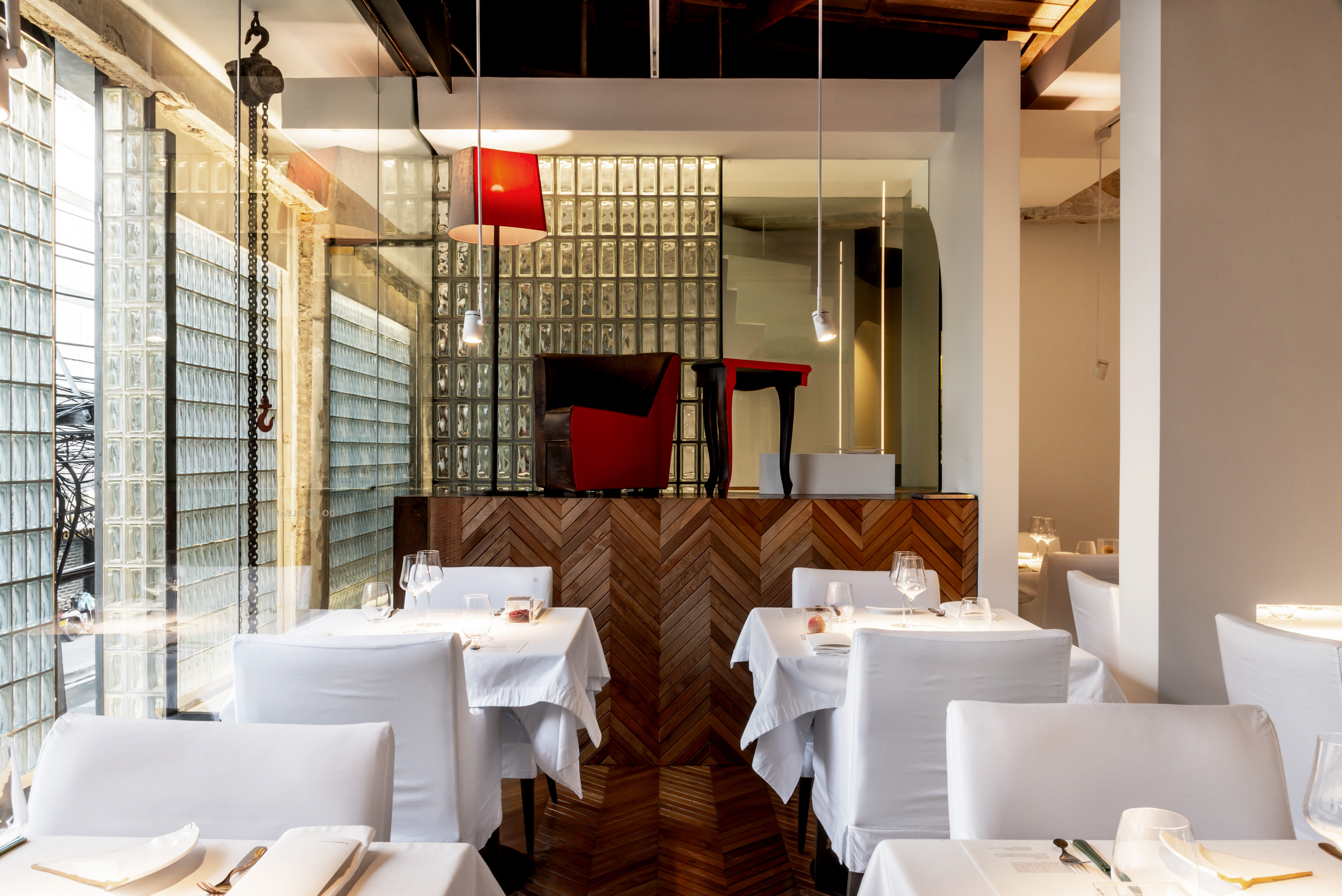 ความประทับใจแรกพบ เริ่มต้นขึ้นจากการได้สัมผัสบรรยากาศหรูหรา แต่ทว่าเรียบง่าย สบาย ๆ ด้วยการตกแต่งร้านโดยเน้นใช้วัสดุธรรมชาติ สร้างความโดดเด่นด้วยกำแพงอิฐเปลือยที่ห้อมล้อมห้องอาหารสีขาวสุดเนี้ยบเอาไว้