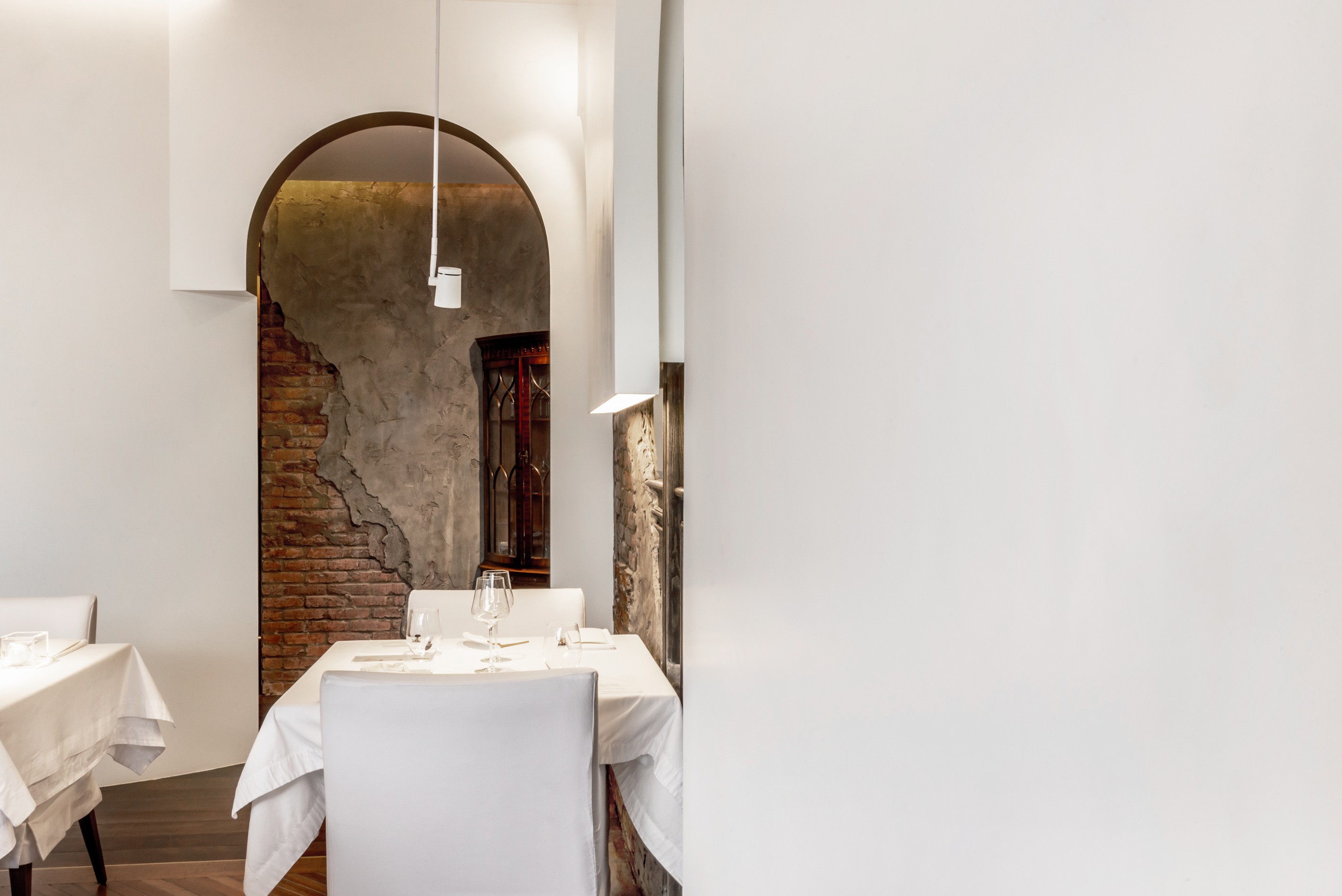ความประทับใจแรกพบ เริ่มต้นขึ้นจากการได้สัมผัสบรรยากาศหรูหรา แต่ทว่าเรียบง่าย สบาย ๆ ด้วยการตกแต่งร้านโดยเน้นใช้วัสดุธรรมชาติ สร้างความโดดเด่นด้วยกำแพงอิฐเปลือยที่ห้อมล้อมห้องอาหารสีขาวสุดเนี้ยบเอาไว้