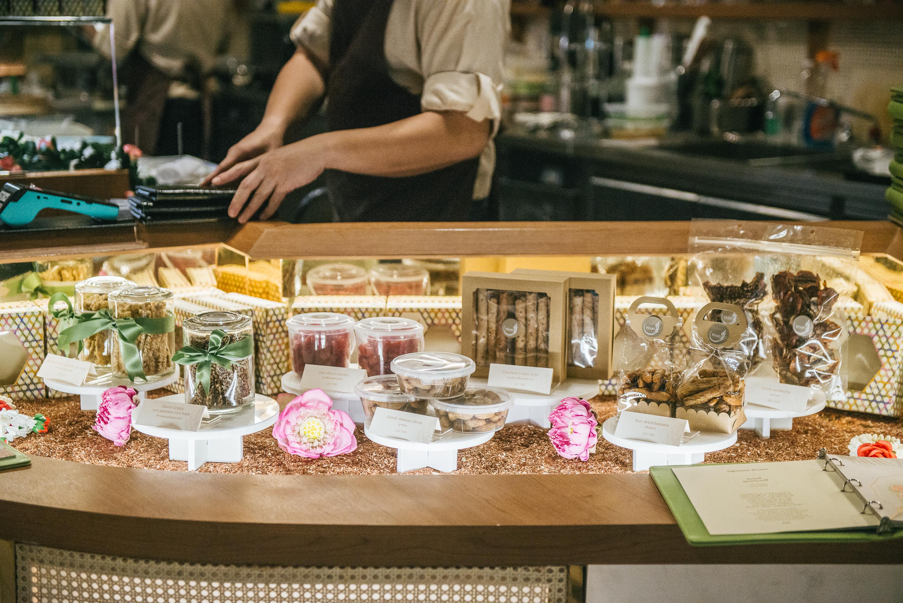 การตกแต่งของตัวร้านยังคงกลิ่นอายและเสน่ห์ความคลาสสิกของร้านข้าวเอาไว้ ด้วยการเลือกใช้เฟอร์นิเจอร์ไม้สีอ่อนผสมผสานกับหินอ่อน ด้านหน้าร้านจัดวางขนมไทยโบราณ และขนมไทยประยุกต์มากมาย