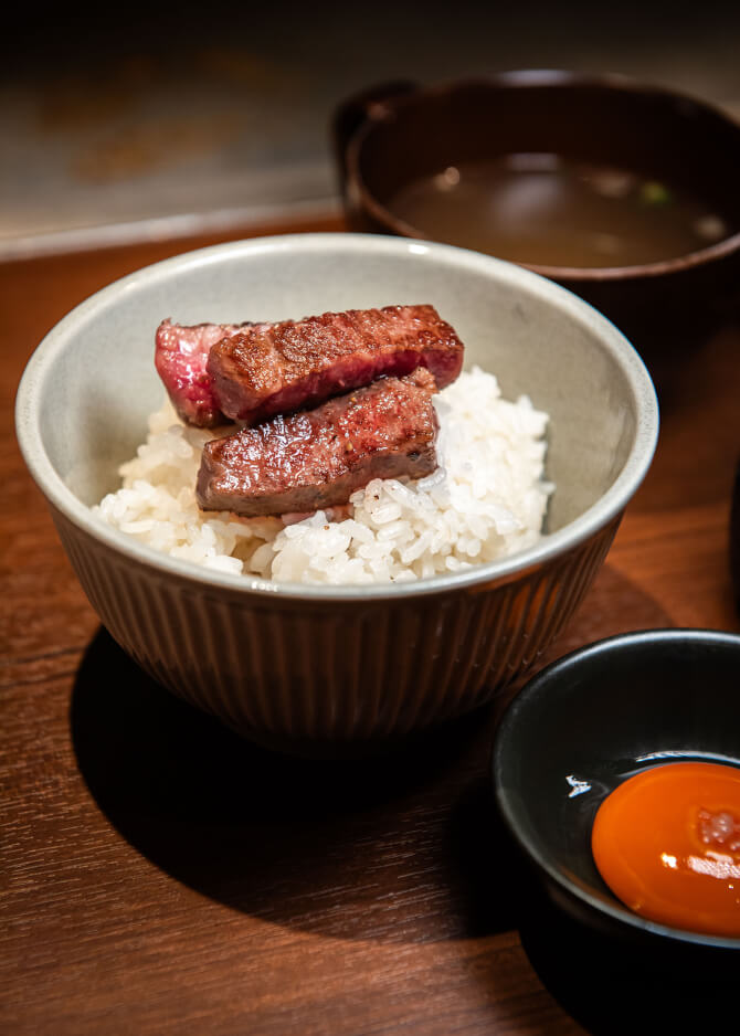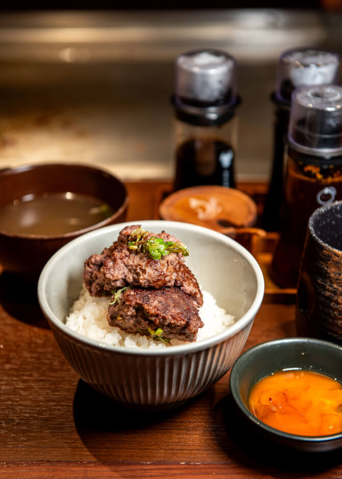 กลิ่นหอมของเนื้อที่สุกกำลังดีผสมกับความนุ่มฉ่ำของแฮมเบิร์กที่ยังเก็บรสเนื้อแท้ไว้เต็มคำ เสิร์ฟพร้อมข้าวญี่ปุ่นร้อน ๆ และมีซอสให้เลือกถึง 5 แบบ จานนี้จึงเป็นเหมือนการรวมเอกลักษณ์ของ KIWAMIYA ทั้งหมดไว้ในหนึ่งมื้อ ทั้งความสนุกของการย่างเอง ความกลมกล่อมของซอส และรสสัมผัสเนื้อที่สมบูรณ์แบบในทุกคำ