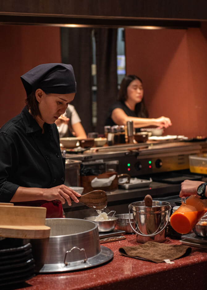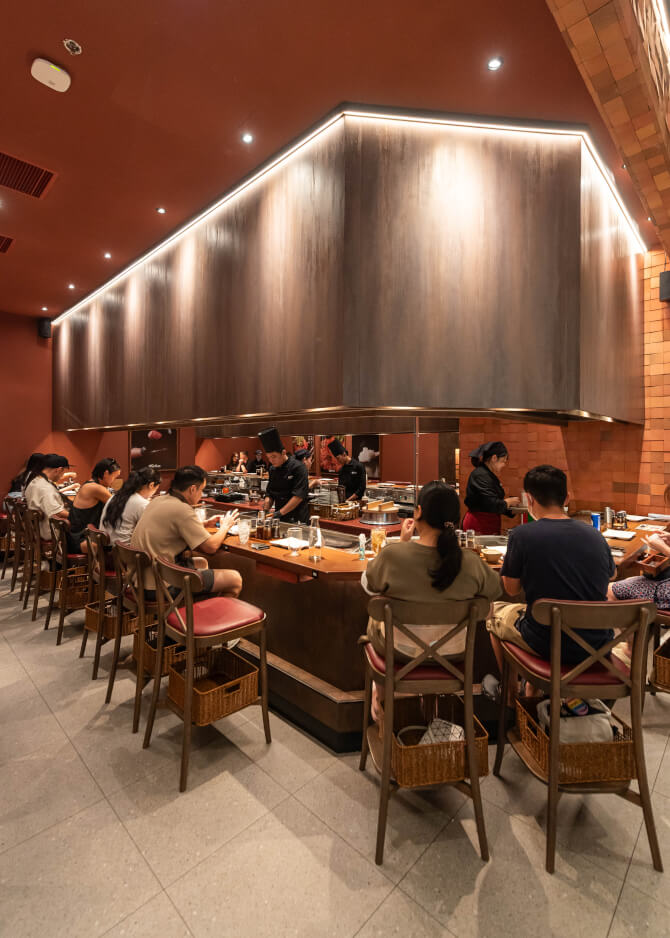 โซนเคาน์เตอร์บาร์เป็นอีกหนึ่งไฮไลต์ที่สามารถนั่งชมขั้นตอนการปั้นและย่างแฮมเบิร์กของเชฟแบบใกล้ชิด ทั้งยังได้เห็นเทคนิคพิเศษของเชฟแต่ละขั้นตอน ตั้งแต่การปั้นแฮมเบิร์กสดใหม่ทุกชิ้น ไปจนถึงการย่างบนเตาเทปันร้อนๆ เพิ่มความสนุกและอินกับมื้ออาหารมากขึ้นได้อีกเป็นเท่าตัว