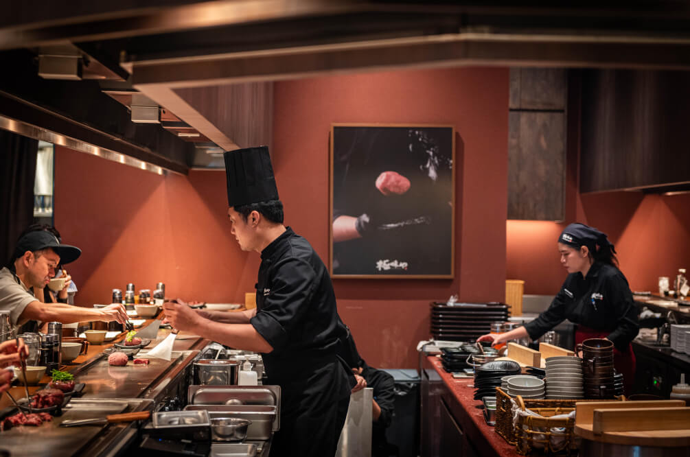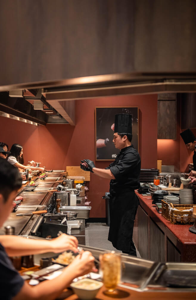 บรรยากาศในร้านยังคลาสสิกและนั่งสบาย มีหลากหลายโซนที่นั่งให้เลือกไม่ว่าจะเป็นโต๊ะกลุ่ม หรือโซนหน้าเคาน์เตอร์ที่มีเตาเทปันร้อนๆ ให้คุณได้ชมขั้นตอนการปรุงอาหารแบบใกล้ชิด อบอุ่นด้วยแสงไฟสบายตาและดีไซน์ร้านเรียบหรูที่ช่วยส่งให้มื้ออาหารเต็มไปด้วยความผ่อนคลายและความพรีเมียมตั้งแต่ก้าวเข้าร้าน