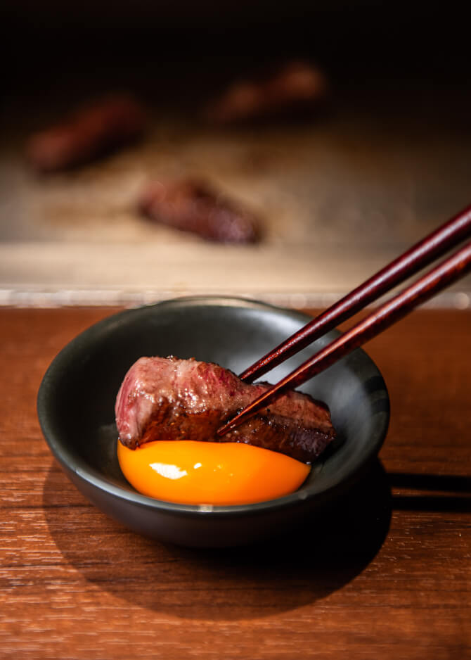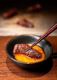 เมื่อตีไข่เบา ๆ แล้วจุ่มเนื้อไปจนความครีมมีของไข่เคลือบบนเนื้อทั้งหมด จะได้สัมผัสของความมันละมุนและกลิ่นหอมบาง ๆ ที่ช่วยเคลือบเนื้อให้ชุ่มฉ่ำขึ้นอีกขั้น รสชาติกลมกล่อมมากขึ้นและมีความนุ่มละลายในปาก เป็นเทคนิคการทานที่คนญี่ปุ่นนิยมใช้กับเมนูเทปันยากิหรือชาบูระดับพรีเมียม ซึ่งทาง KIWAMIYA ตั้งใจนำมามอบให้ลูกค้าในไทยได้สัมผัสความอร่อยแบบต้นตำรับอย่างแท้จริง
