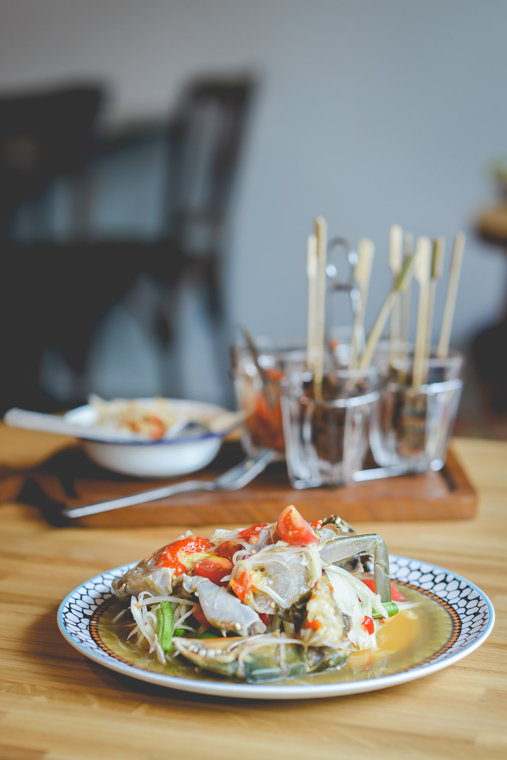 เมนูอาหารอีสานของที่นี่เดาได้ไม่ยาก แต่ทั้งสูตรอาหารและแม่ครัวของร้านล้วนมาจากที่บ้านของเจ้าของร้านเองเพื่อรสชาติตามแบบฉบับอย่างที่ทางร้านอยากให้เป็น รวมไปถึงคอนเซ็ปท์การนำอาหารทะเลมาอยู่ในหลาย ๆ จานแนะนำ หากใครไปเป็นกลุ่ม อย่าห่วงเรื่องคอเลสเตอรอลแล้วสั่ง ส้มตำปูทะเลไข่ (380 บาท) ที่มาทั้งตัวทั้งไข่ไซส์ใหญ่แบบไม่อั้น ส้มตำกั้ง (125 บาท) ก็เช่นกัน ใครโชคดีแวะไปถูกจังหวะก็ได้ทาน เพราะทางร้านนำเข้ามาตามฤดูกาลที่ทางหัวหินจับได้ และที่สำคัญ ปลาหมึกไข่เลลาว (185 บาท) ใครไม่ทานแล้วจะเสียใจ ปลาหมึกทอดมากับซอสเค็ม ๆ หวาน ๆ กำลังดี ไม่เหนียว