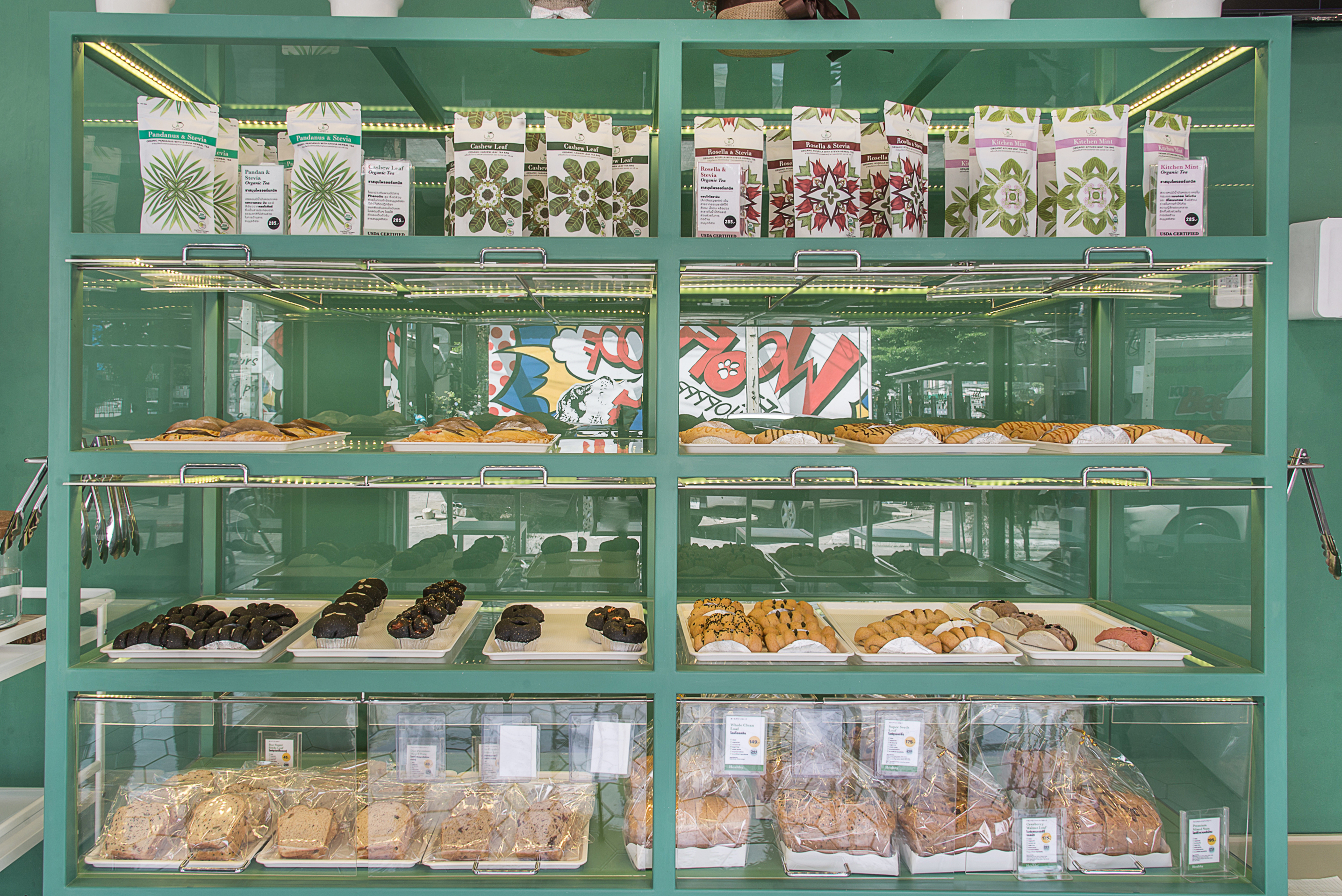 บรรยากาศภายในร้านมาในมู้ดแอนด์โทนสีขาว-เขียวเย็น ๆ ดูสบายตา โดยสีขาวนั้นสื่อถึงความโมเดิร์น สนุกสนาน บริสุทธิ์ คลีน ปราศจากการปนเปื้อน ผสานเข้ากับสีเขียวที่สื่อถึงความเป็นธรรมชาติ นอกจากมุมเคาน์เตอร์และเชลฟ์ผลิตภัณฑ์เป็นหลักแล้วยังมีมุมให้ได้นั่งทานอาหาร จิบเครื่องดื่มสบาย ๆ ถ่ายภาพได้ ทั้งมุมเก้าอี้บาร์และโต๊ะนั่งแบบเป็นส่วนตัวสำหรับใครที่มากันเป็นกลุ่ม